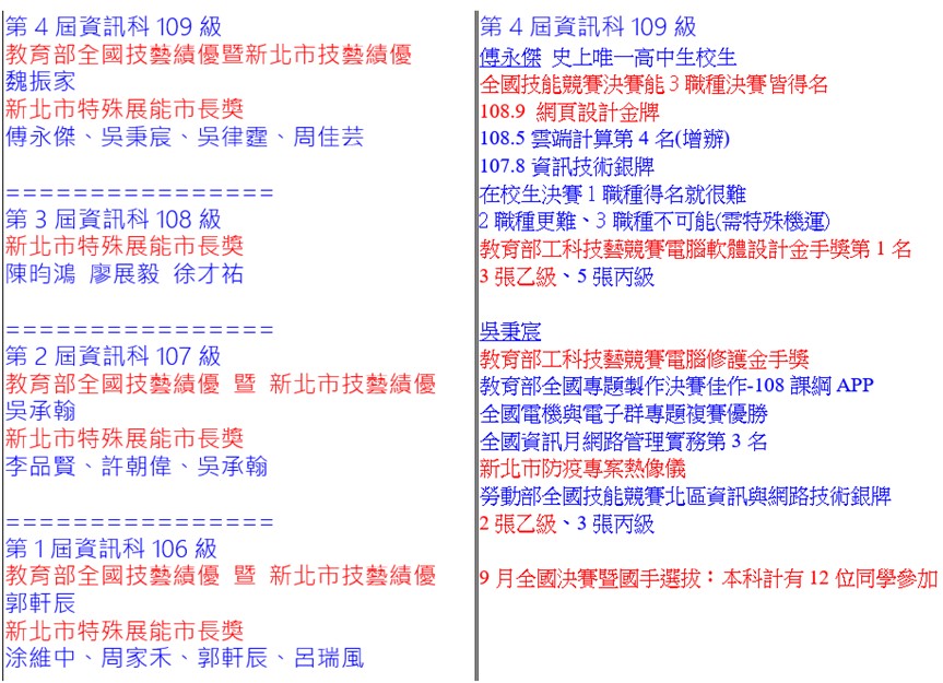 109年度全國工業類科技藝競賽資訊科選手表現優異!