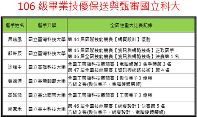 資訊科:107學年度重大技能競賽(具保送與技優資格)