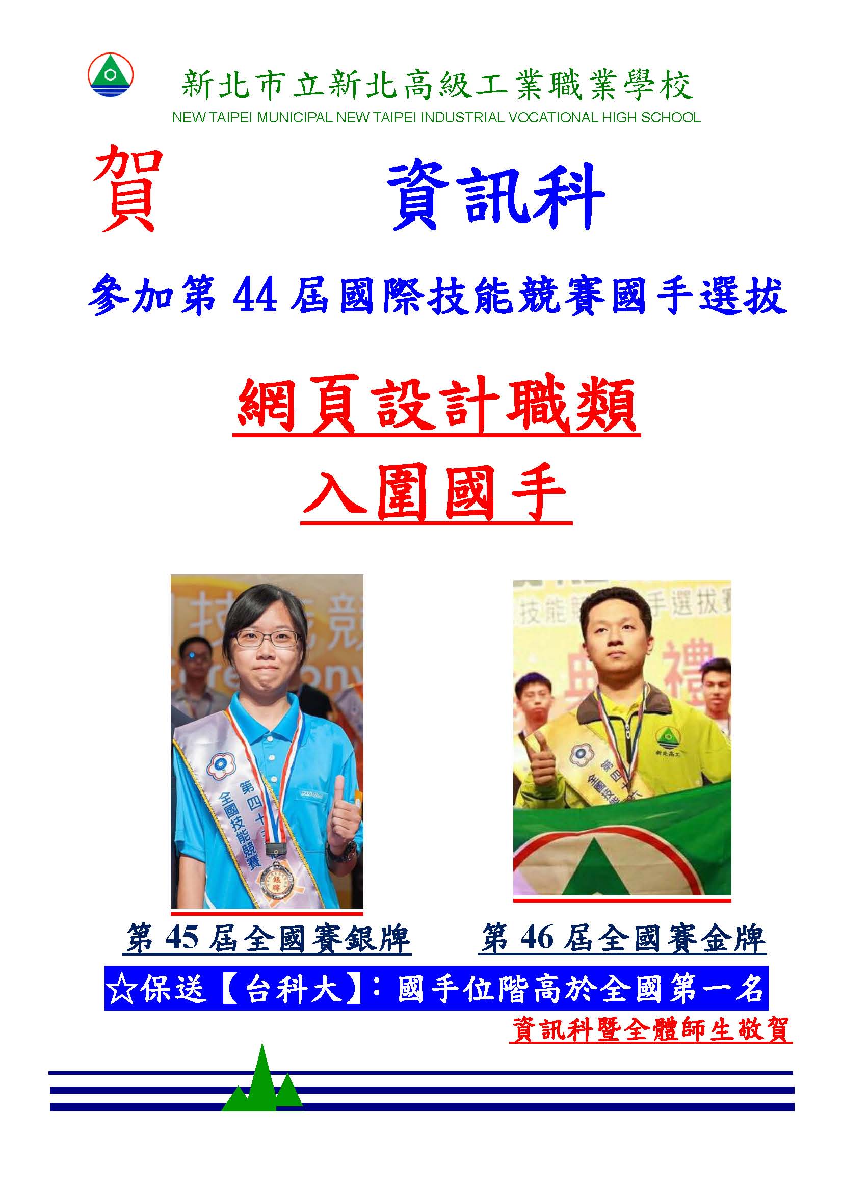 狂賀:第46屆全國技能競賽暨國際賽國手選拔 成績亮麗