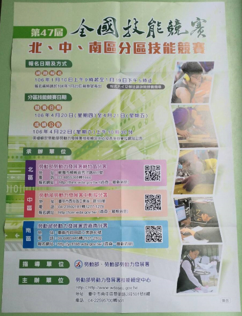 [轉知]第47屆全國技能競賽北區分區技能競賽簡章並推薦選手參賽1案,請查照。