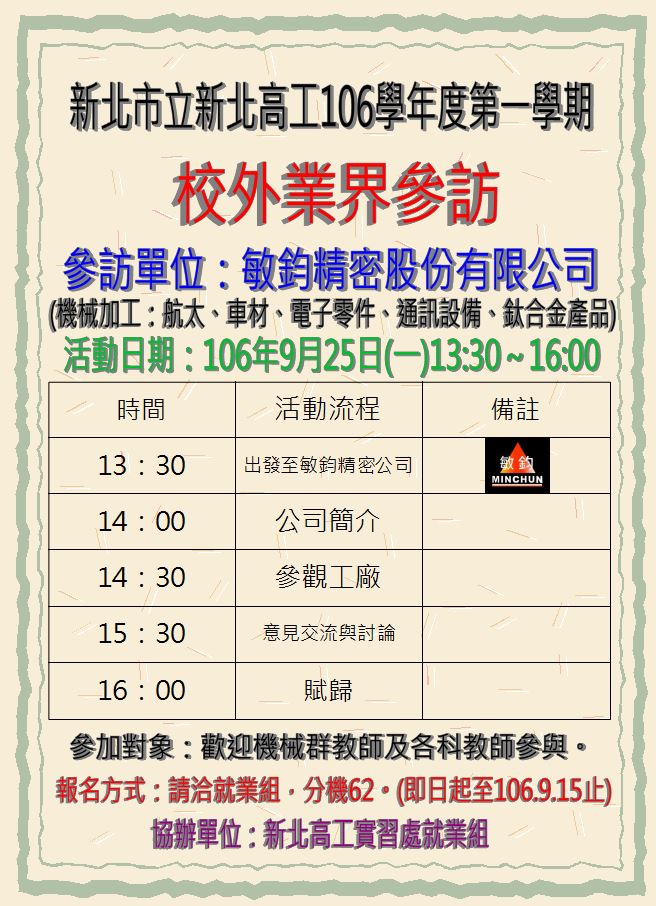 轉知:主題式職業試探體驗常設展及技專校院類產業基地體驗活動一覽表