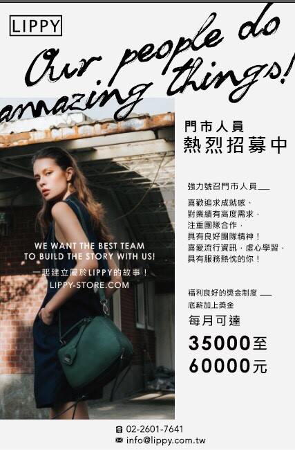 柏莉有限公司徵門市銷售人員,相關訊息請詳閱附件-徵才資料表