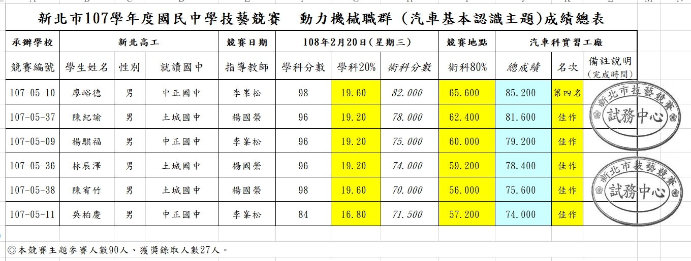 賀~新北市107學年度動力機械職群-汽車基本認識主題競賽成績優異-新北高工培訓