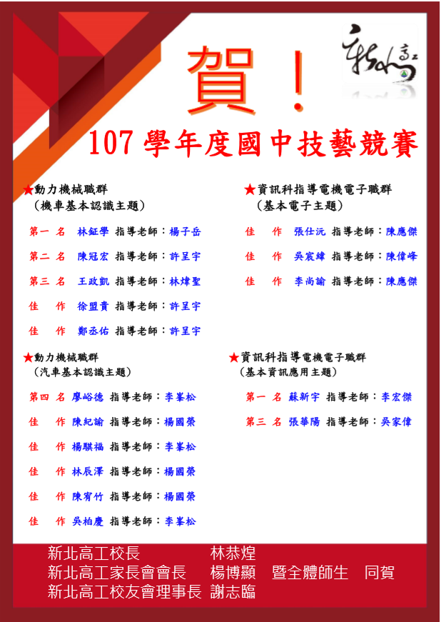 新北市110學年度技術型高級中等學校學生學習歷程檔案暨考招宣導 --技專校院Exhibition活動專題講座錄取名單