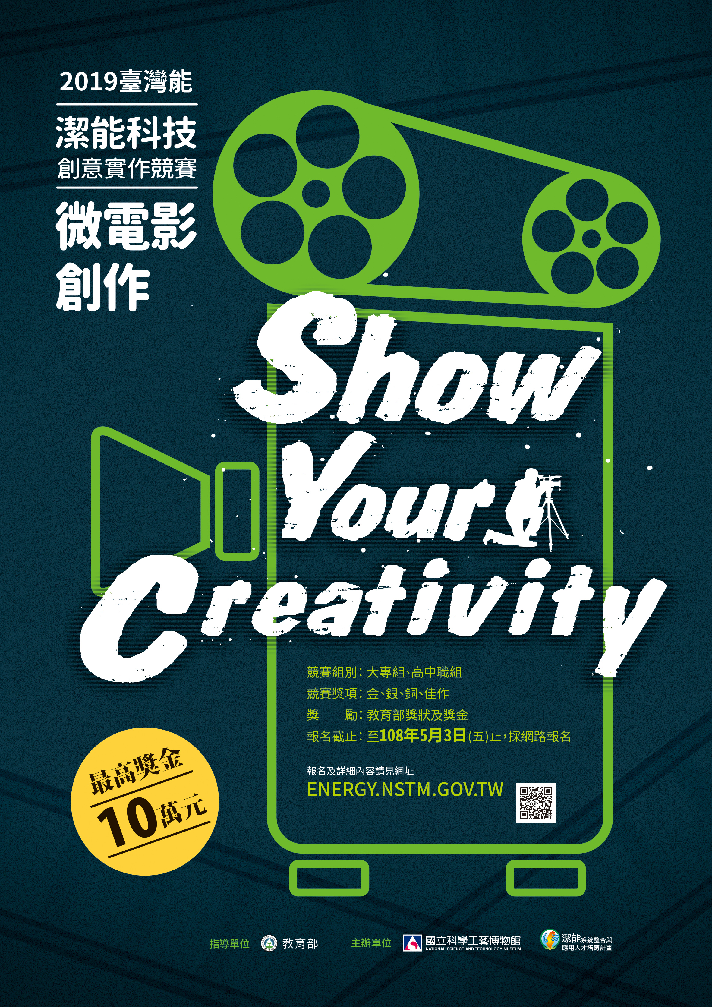 一、本競賽為教育部指導之全國性競賽,主要目的在於邀請全國高中職學生藉由微電影創作,激發創意並認識潔淨能源、儲能、節能等與「能源科技與應用」相關主題內容,或探討臺灣能源發展議題進行延伸,提出可讓一般大眾對能源議題產生共鳴之作品。 二、參賽團隊可跨校組隊,優勝者將獲頒教育部獎狀、獎盃及獎金,獎金最高5萬元。 三、本競賽限網路報名,報名時間即日起至108年5月3日下午5時止,詳細競賽資訊請見網頁https://energy.nstm.gov.tw。 四、隨函檢附競賽辦法及競賽海報。本競賽聯絡人:本館科技教育組黃小姐,電話:07-3800089分機5121或5116。