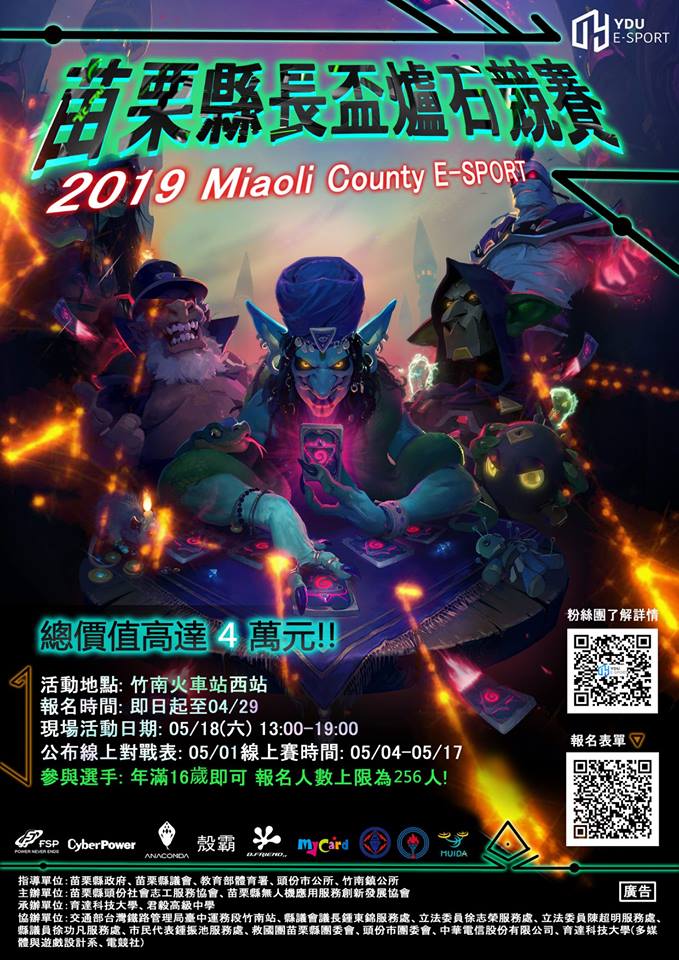 轉知:育達科技大學多媒體與遊戲設計系辦理「2019苗栗縣縣長盃爐石競技賽」活動