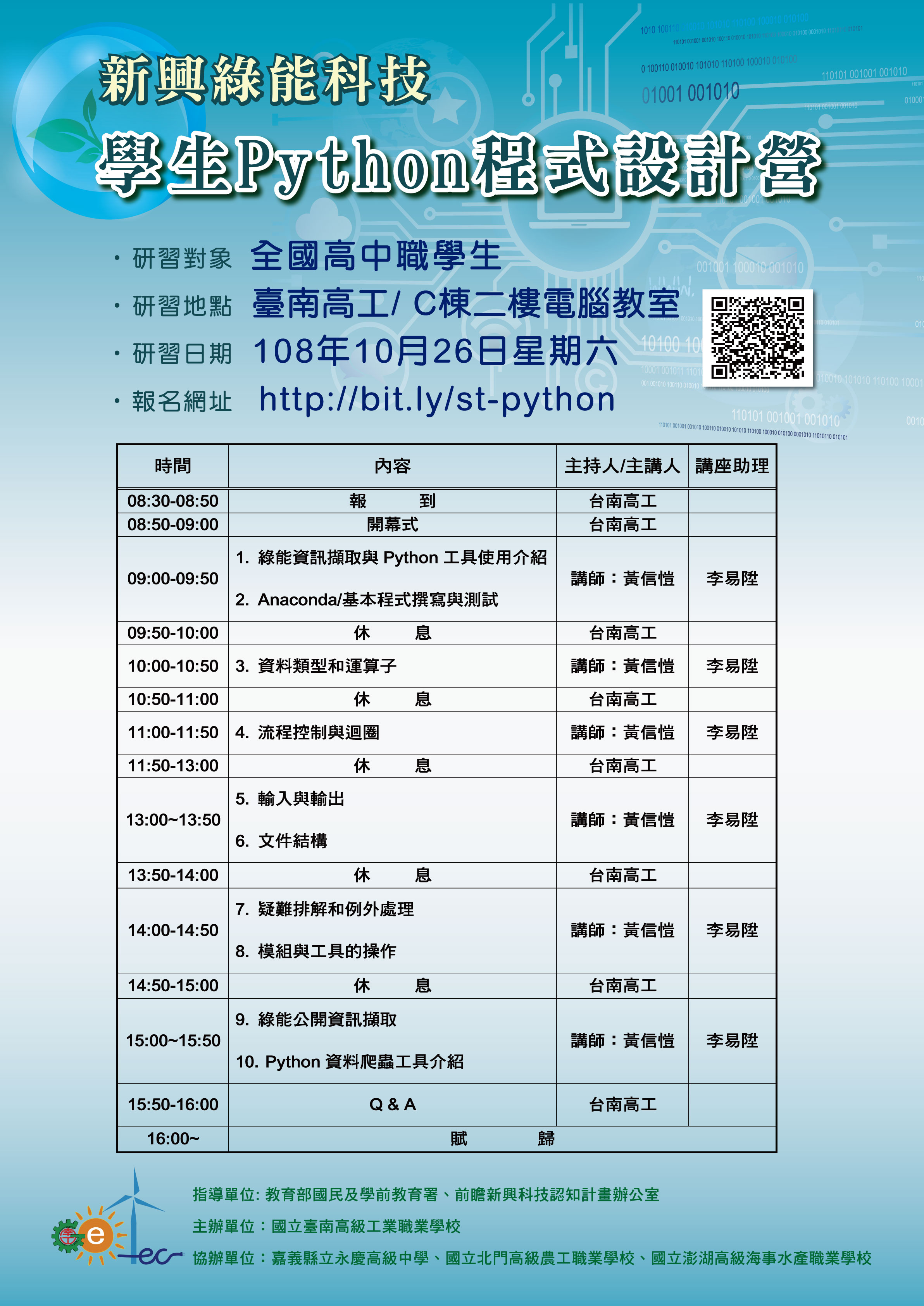 (四)報名網址:http://bit.ly/st-python(名額有限,額滿為止)。