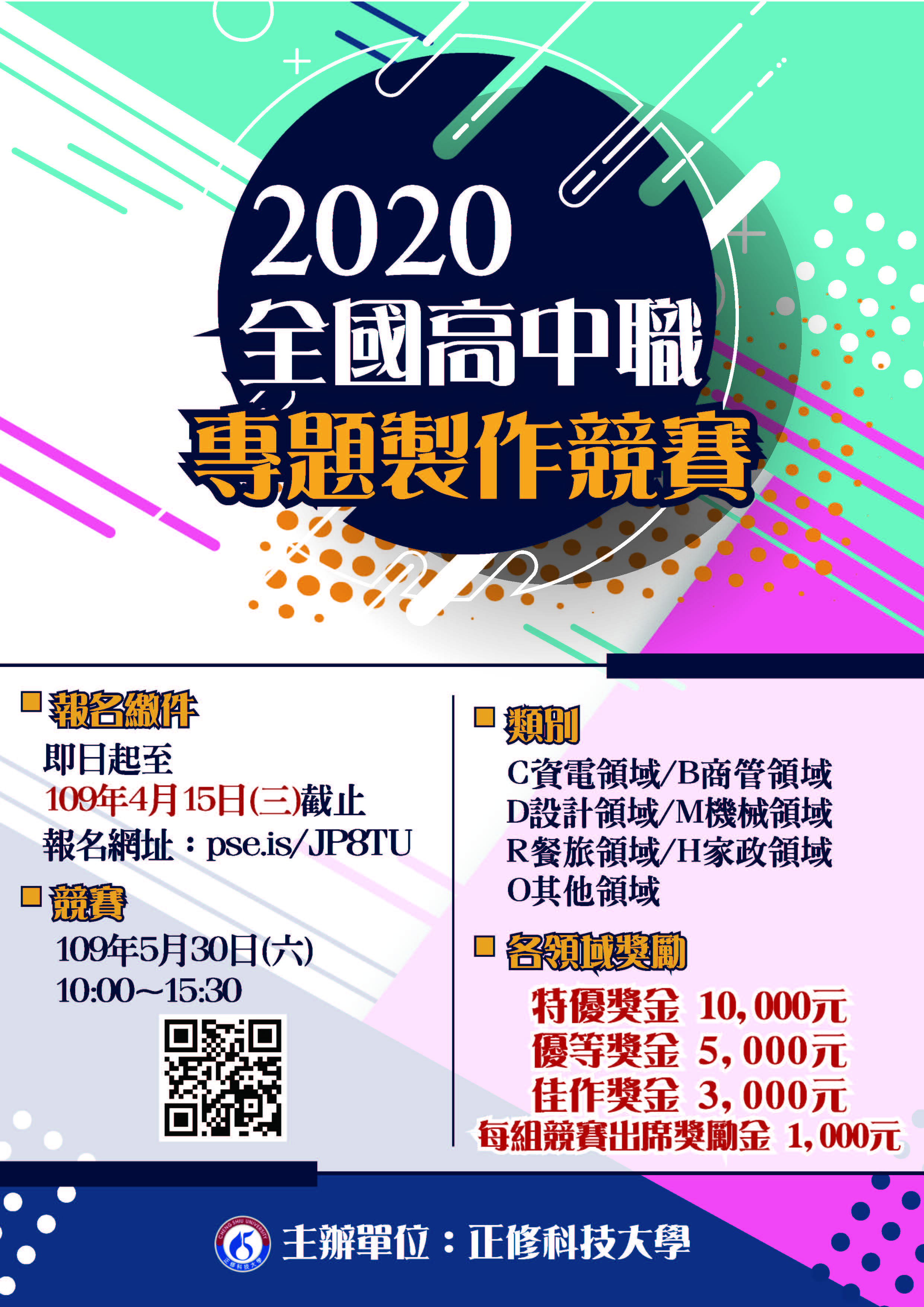 轉知:財團法人正修科技大學辦理2020全國高中職學校專題製作競賽。
