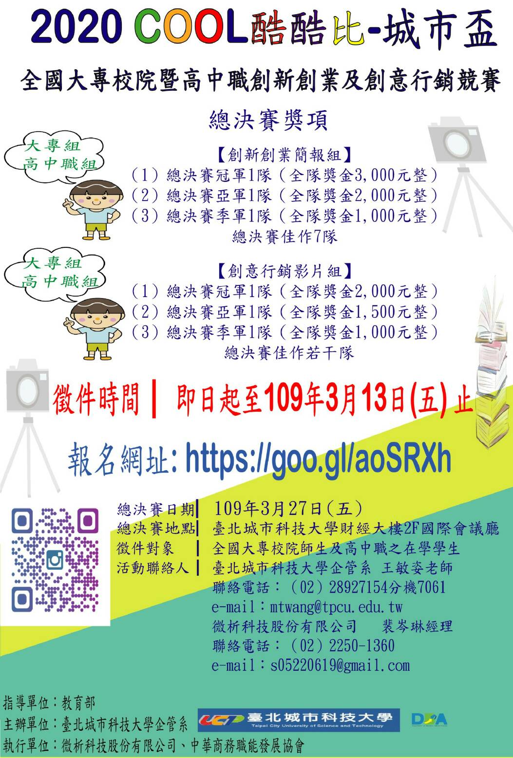 轉知:財團法人臺北城市科技大學辦理「2020 COOL酷酷比—城市盃全國大專校院暨高中職創新創業及創意行銷競賽活動」。