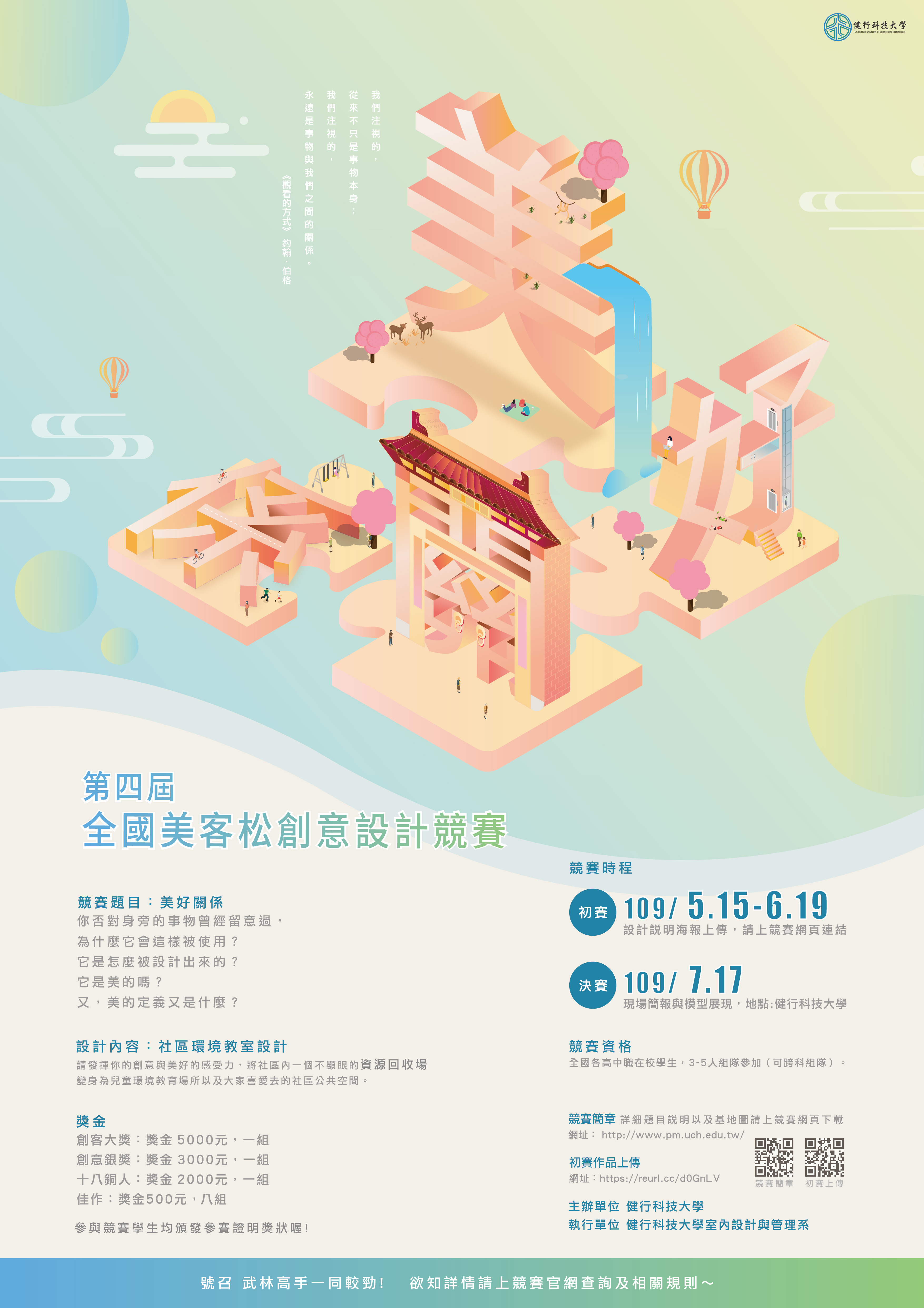 轉知:財團法人健行科技大學舉辦第四屆美客松全國創意設計競賽-美好關係,公開徵選設計構想方案。