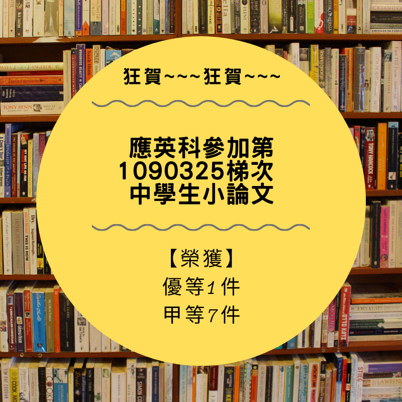賀~~應英科參加第1090325次小論文競賽,獲得優等1件,甲等7件。
