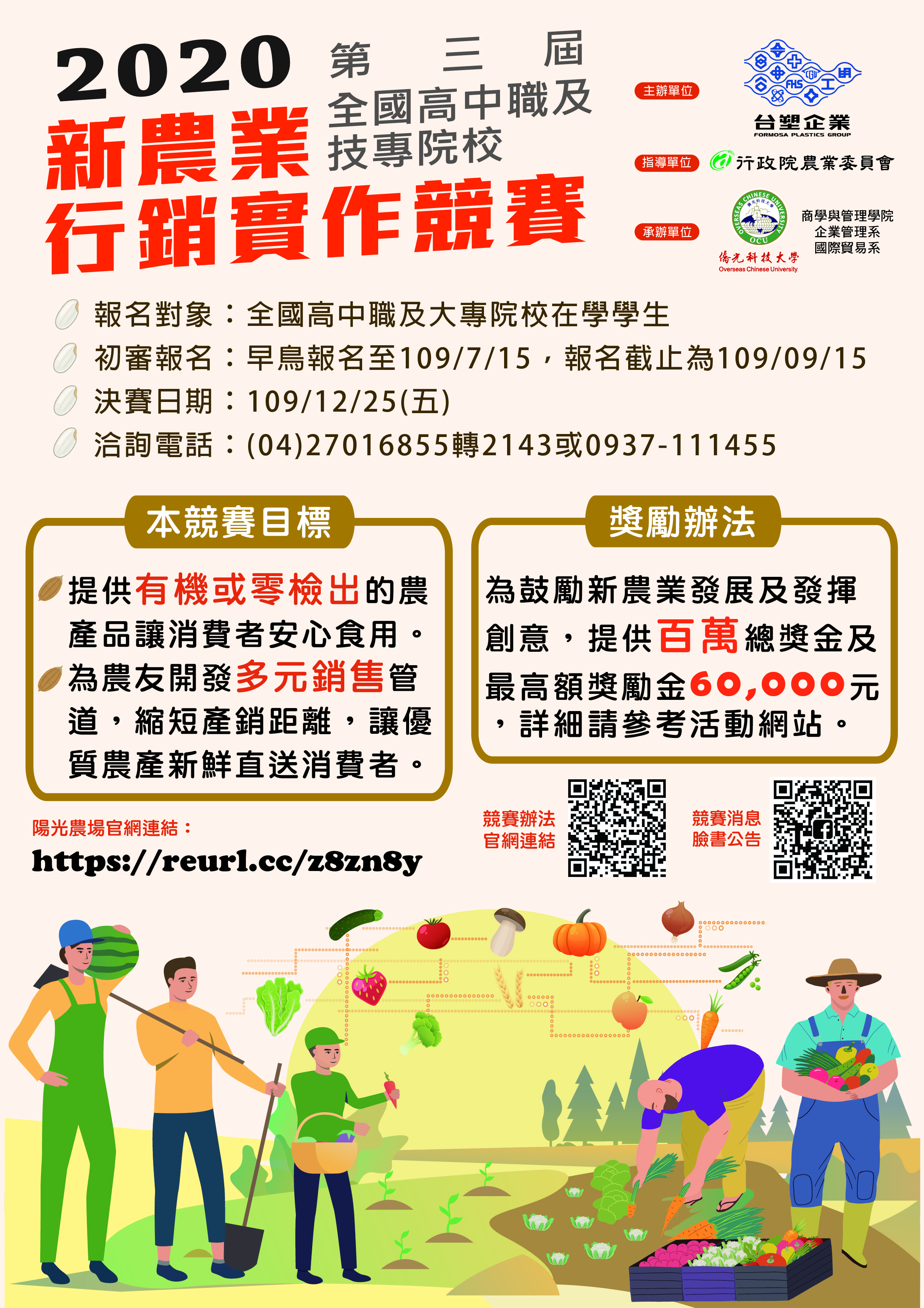 轉知:僑光科技大學承辦台塑企業委託之「第三屆全國高中職及技專院校新農業行銷實作競賽」,敬邀貴校共襄盛舉。
