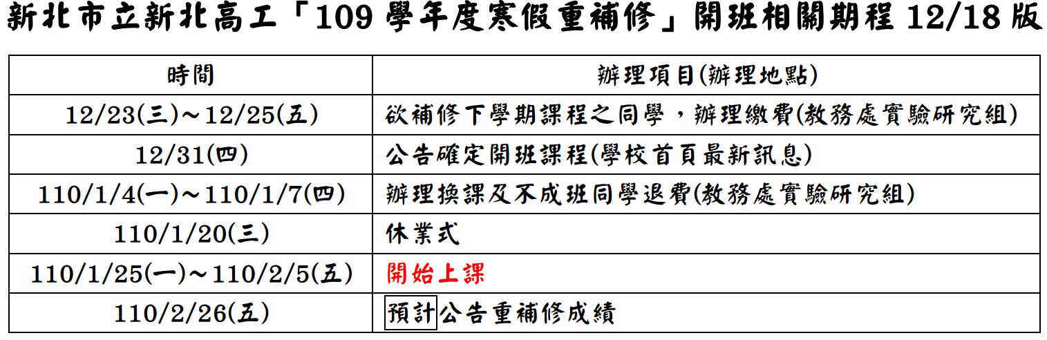 【重要公告】109學年度寒假重補修課程資訊及修課名單_1100114