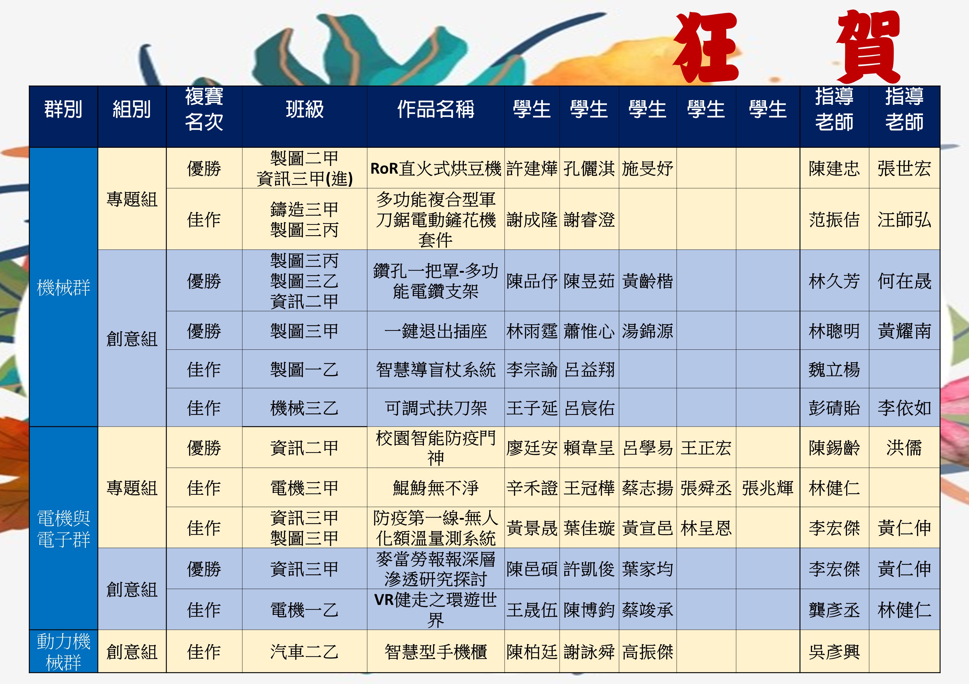 新北市110學年度技術型高級中等學校學生學習歷程檔案暨考招宣導 --技專校院Exhibition活動專題講座錄取名單