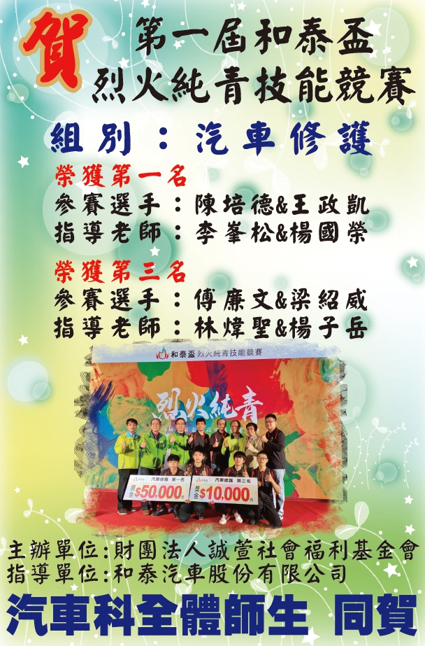 第一屆和泰盃【烈火純青技能競賽】成績優異