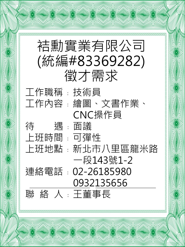 轉知-袺勳實業徵才訊息