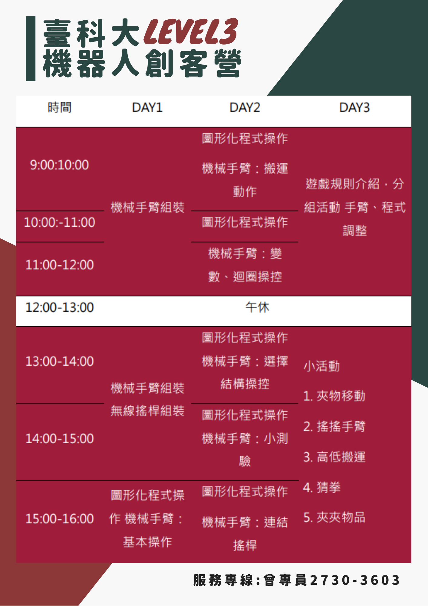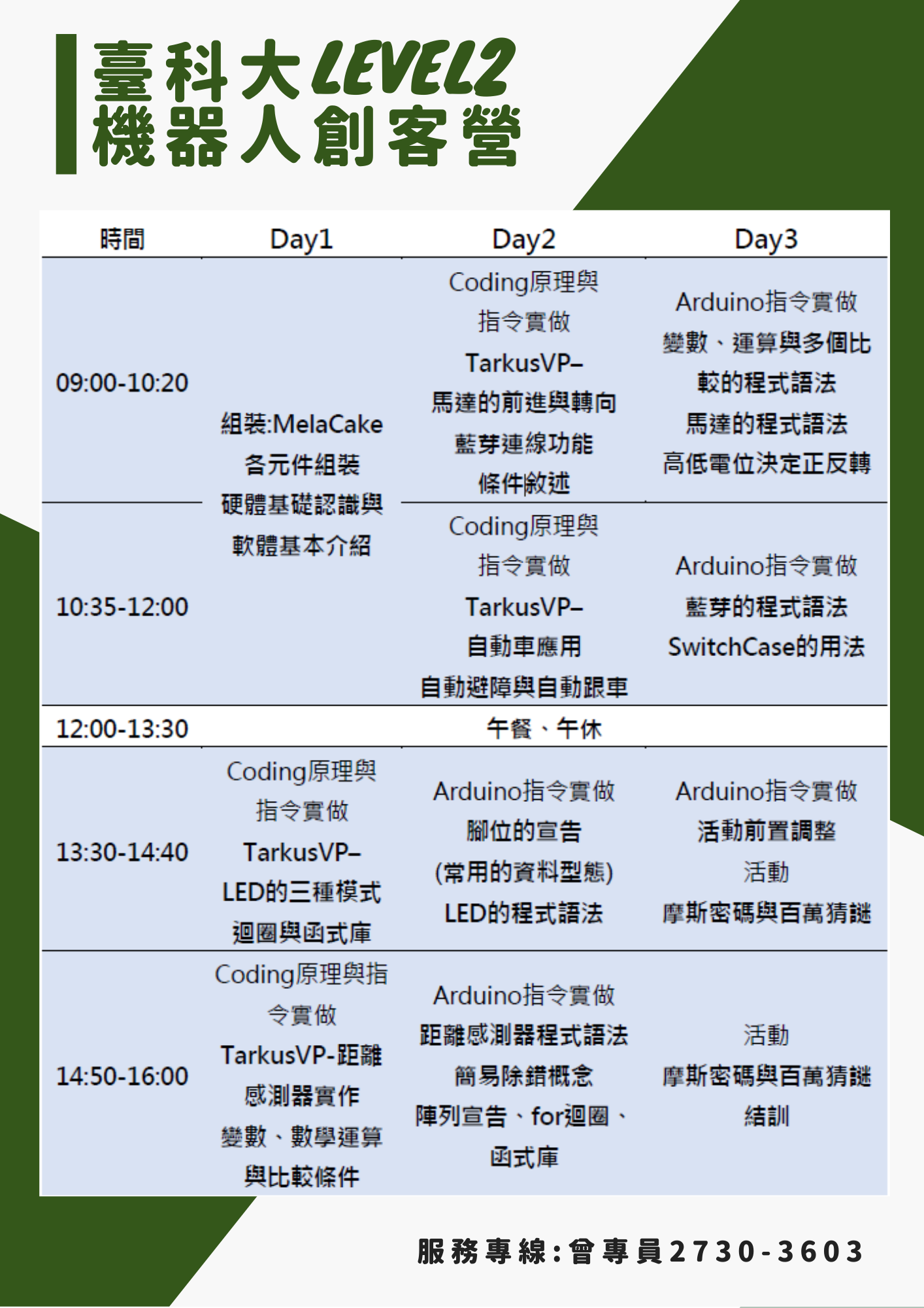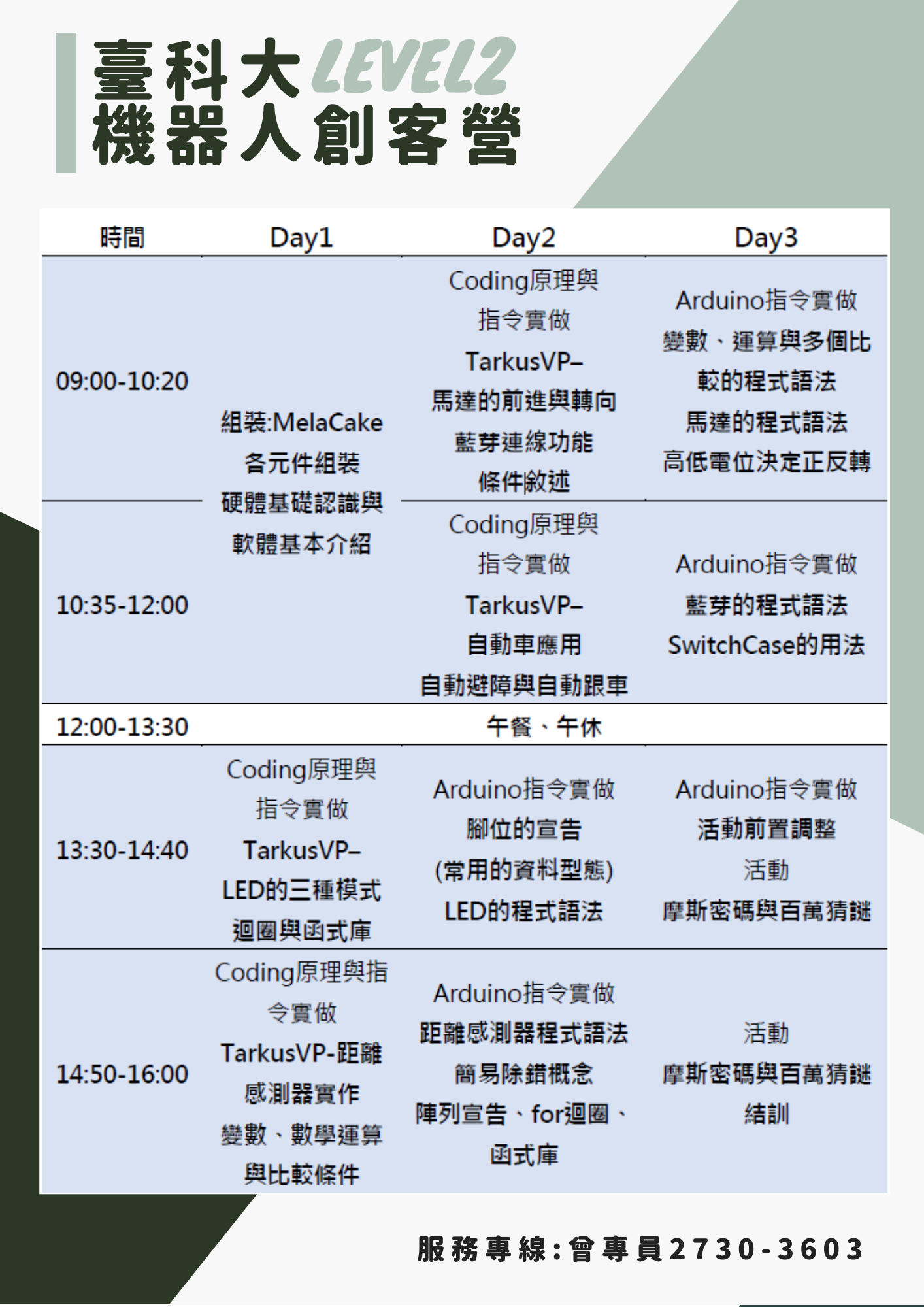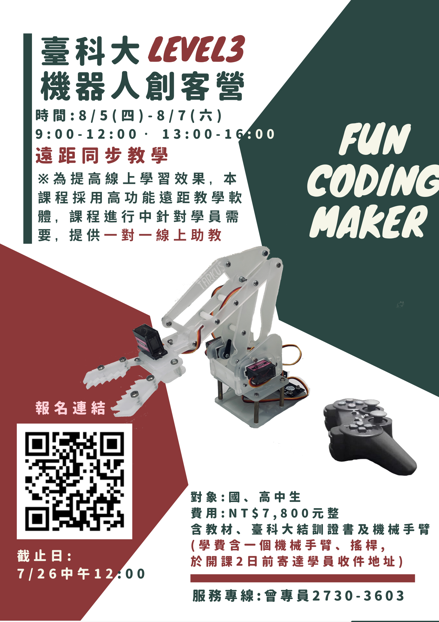 轉知:因應108課綱教育願景,國立臺灣科技大學擬辦理「臺科大機器人創客營level2線上課程」、「臺科大機器人創客營level3線上課程」,敬附活動海報。