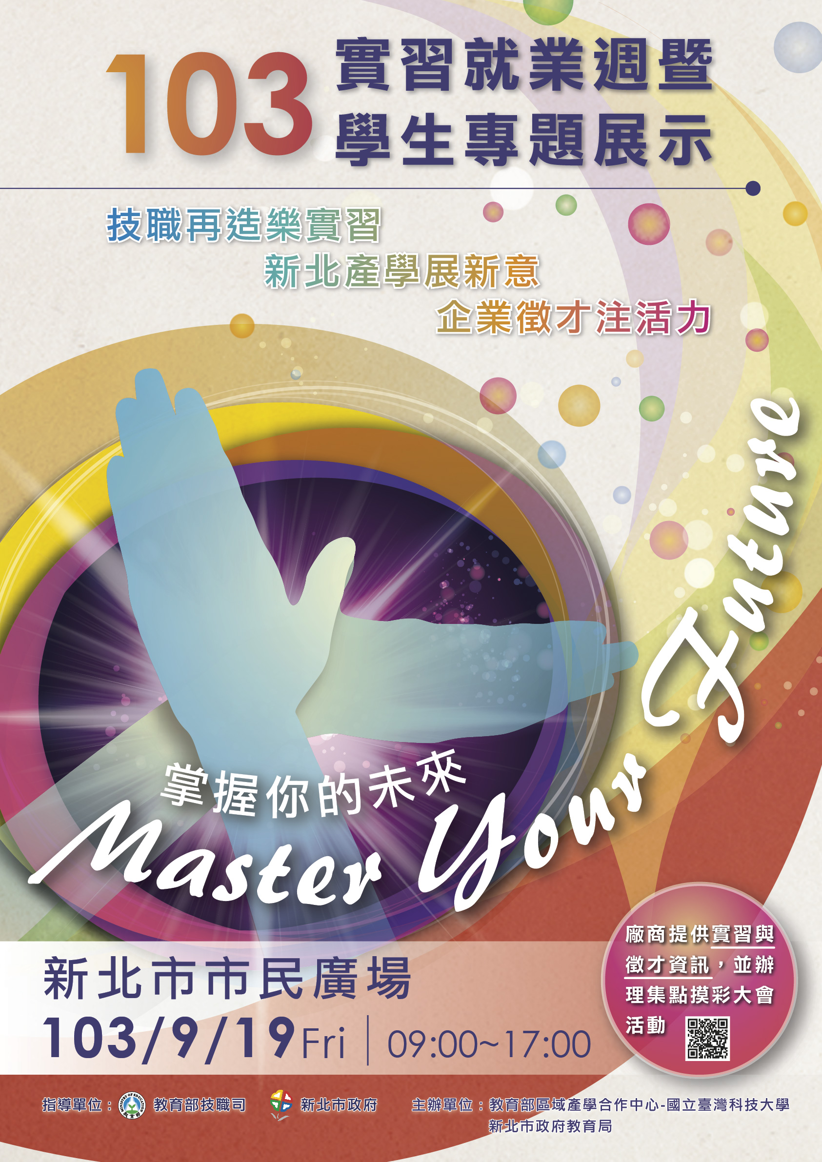 新北市教育局與教育部區域產學合作中心(臺科大)共辦「103年度實習資訊週暨學生專題展示」活動,敬請師生參加。