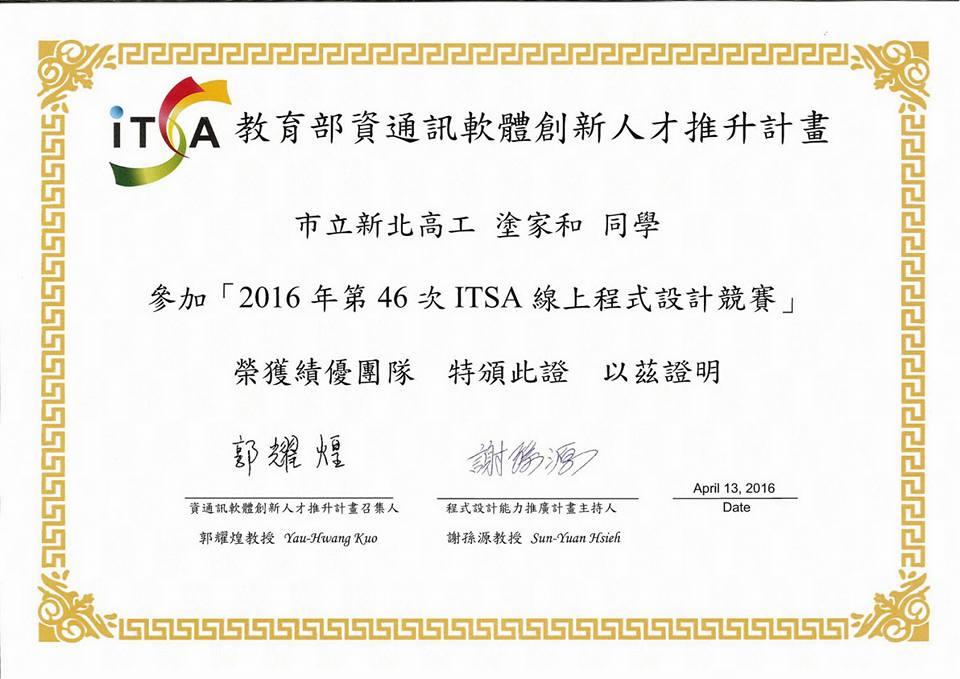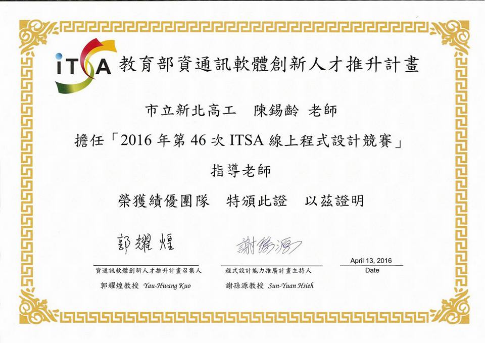 參加教育部2016年ITSA程式設計競賽績優團隊