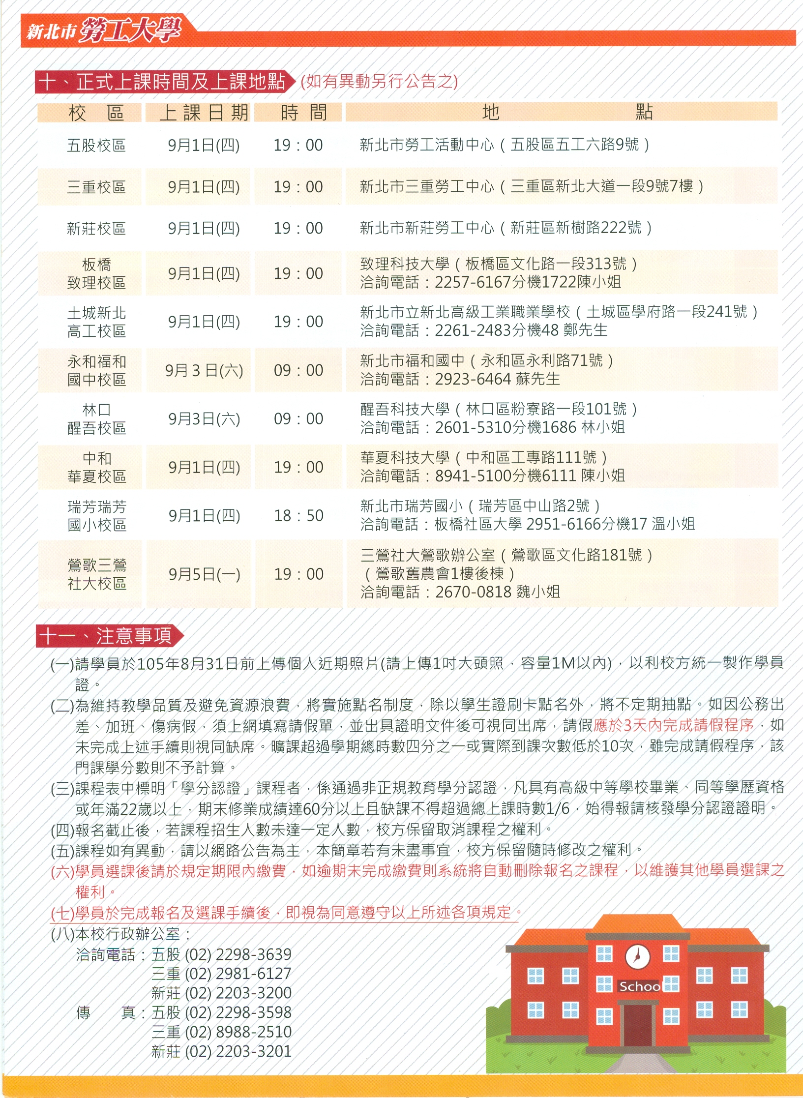 105-1 新北市勞工大學 土城校區 NEW招生訊息06/28