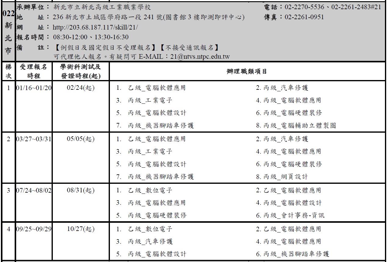 新北市立新北高級工業職業學校110學年度第2學期第1至5次代理教師甄選簡章