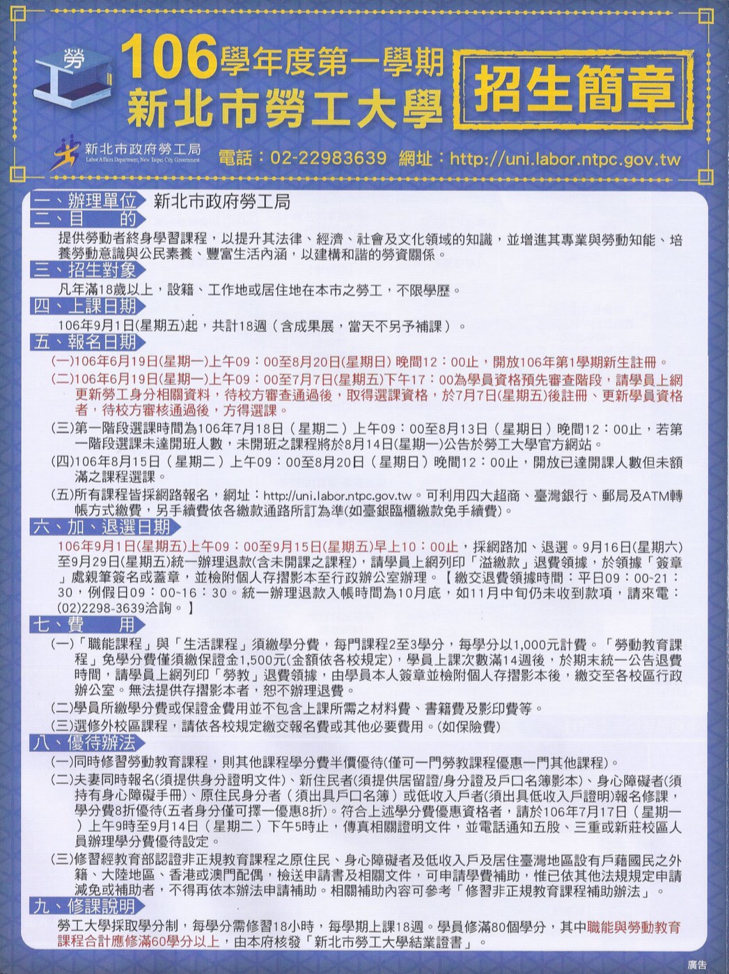 106-1新北市勞工大學簡章