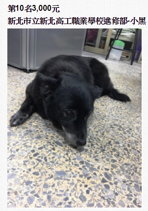 106年十大優秀校園犬票選結果出爐囉! 恭賀 新北高工 小黑 第十名