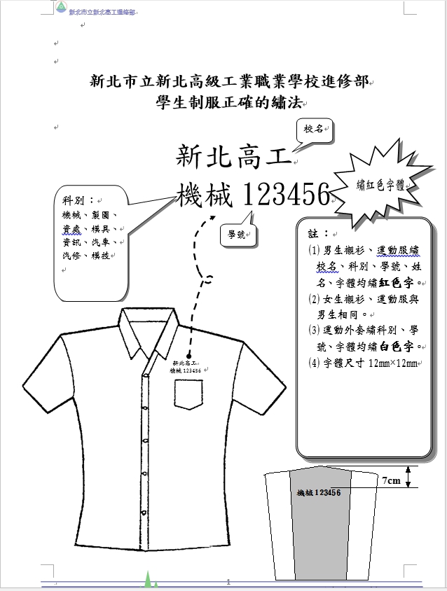 106學年度進修部-學生制服正確繡法.doc.doc