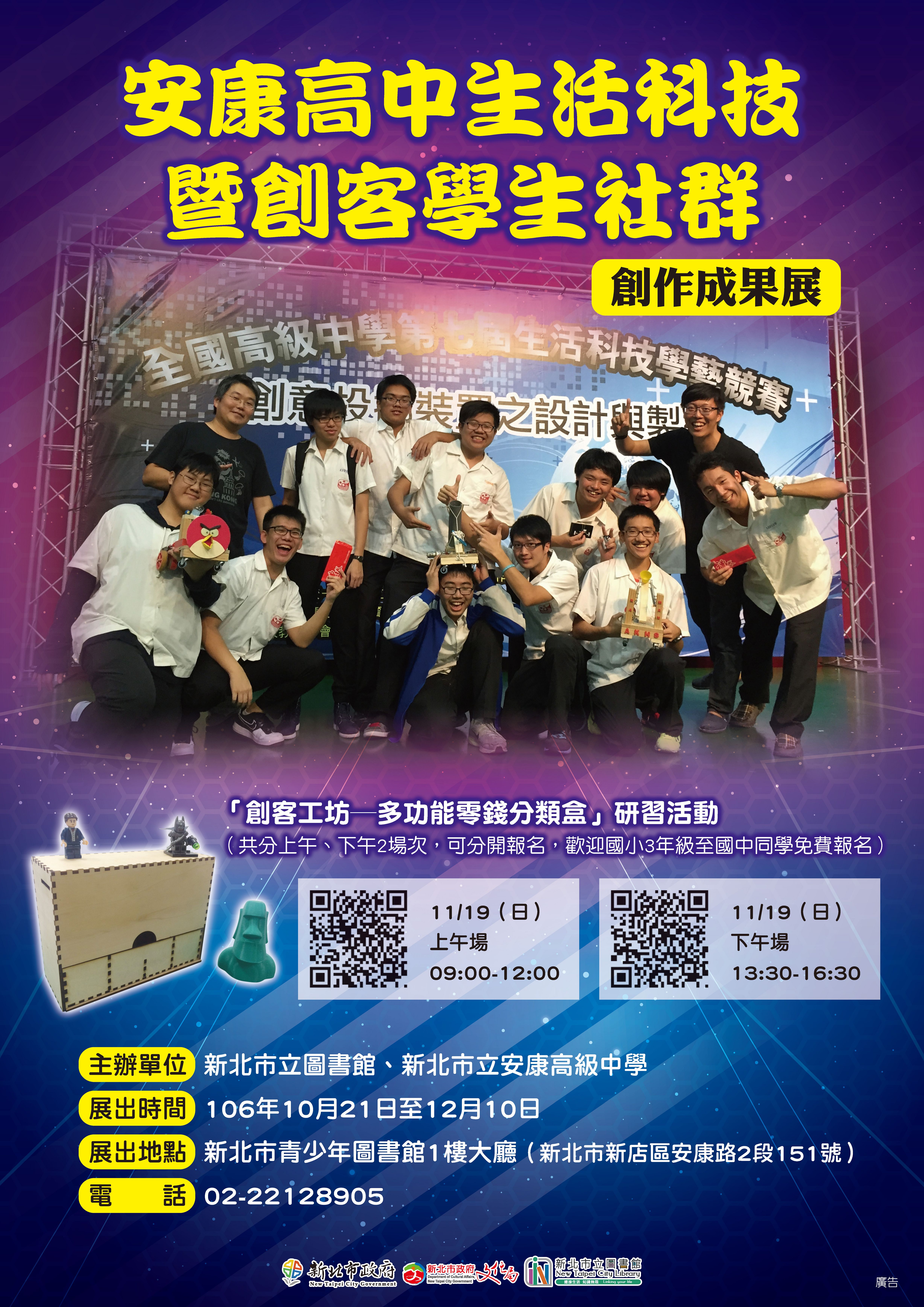 新北市青少年圖書館「安康高中生活科技暨創客學生社群創作成果展」活動文宣