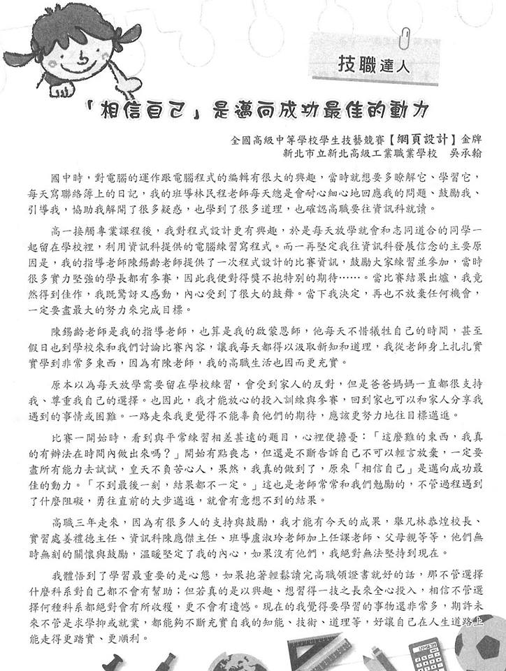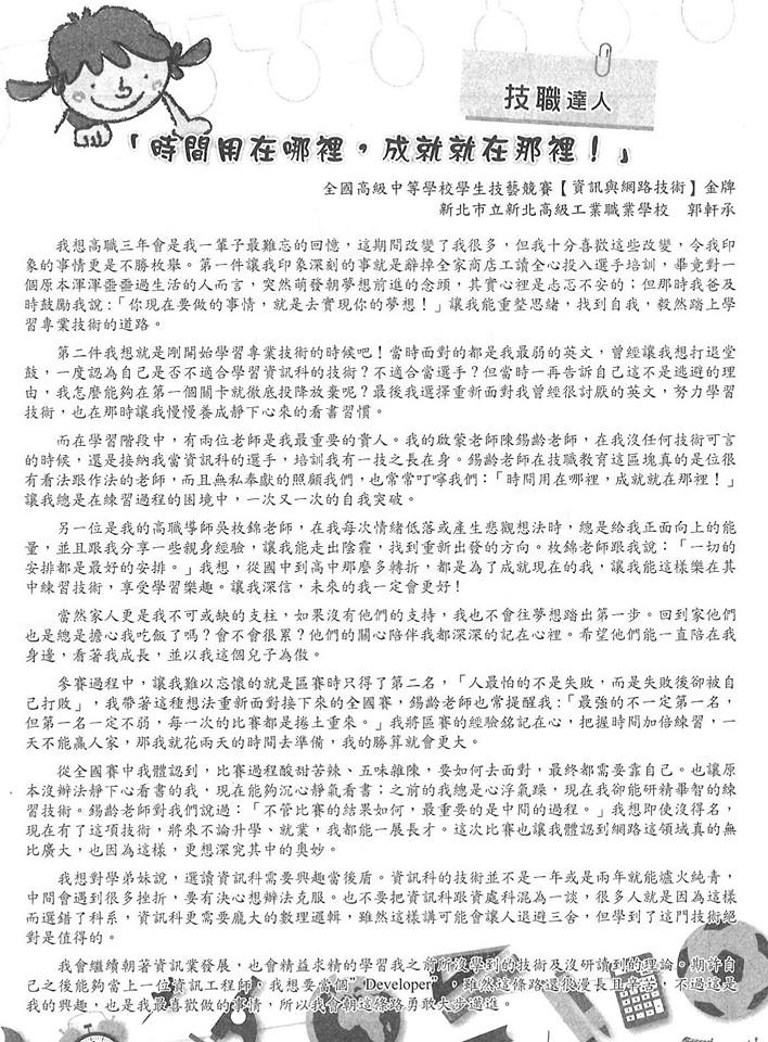 105學年度品德教育聯絡簿刊載文章【資訊科吳承翰、郭軒辰】
