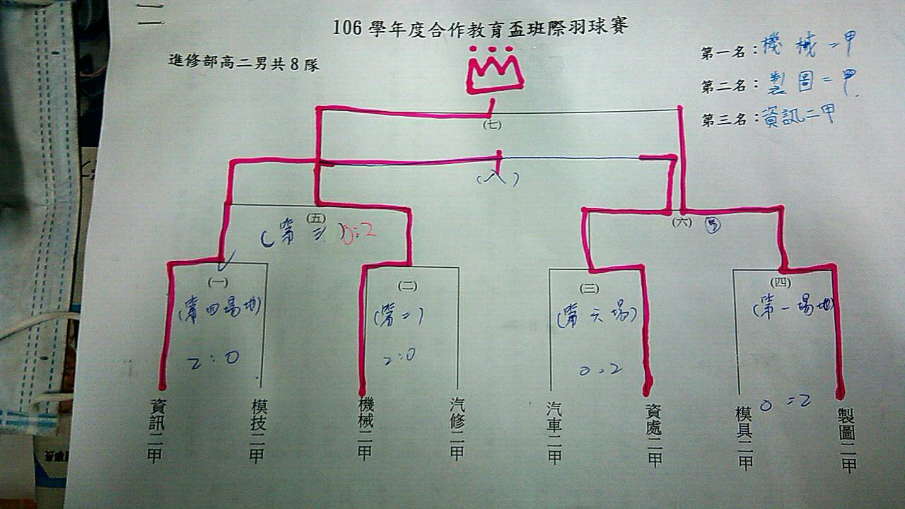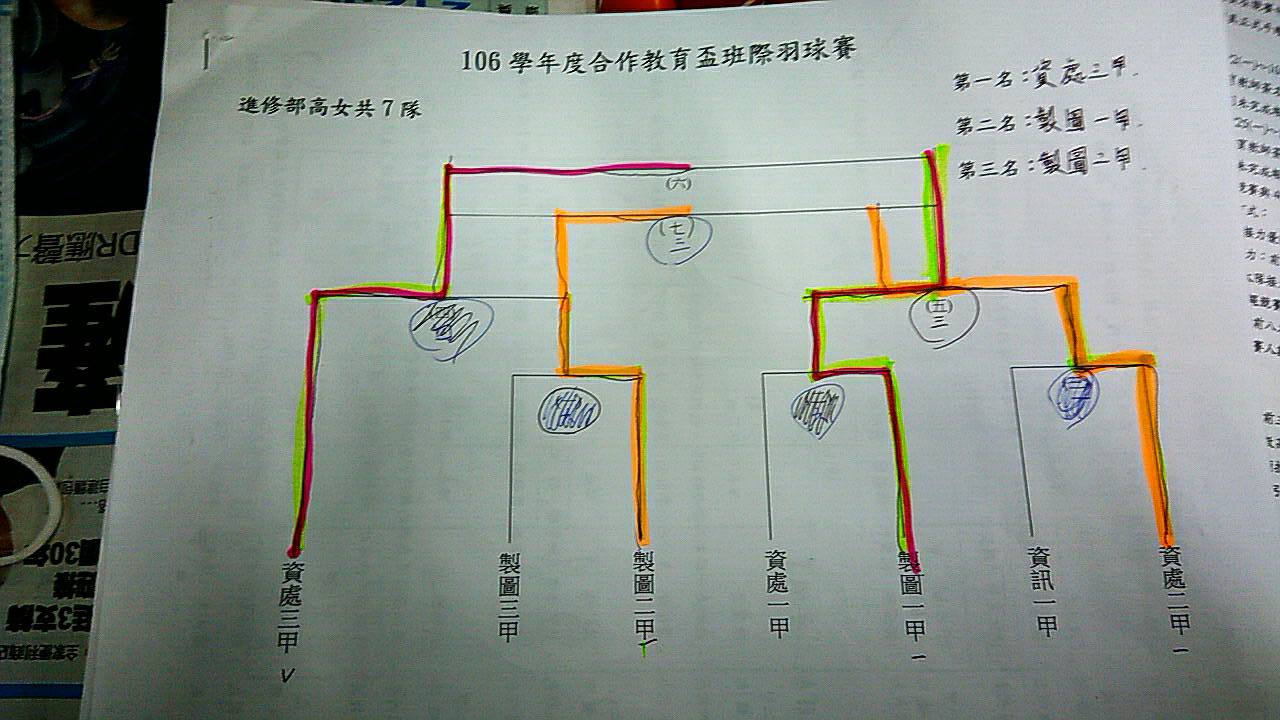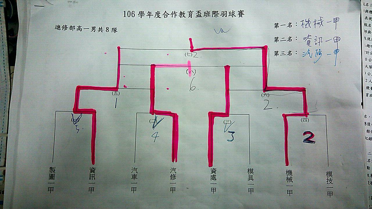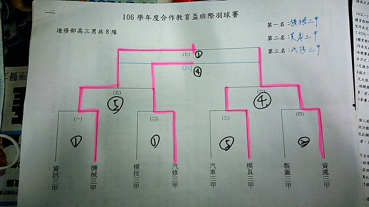 106學年度進修部合作教育盃班際羽球賽各組成績公告