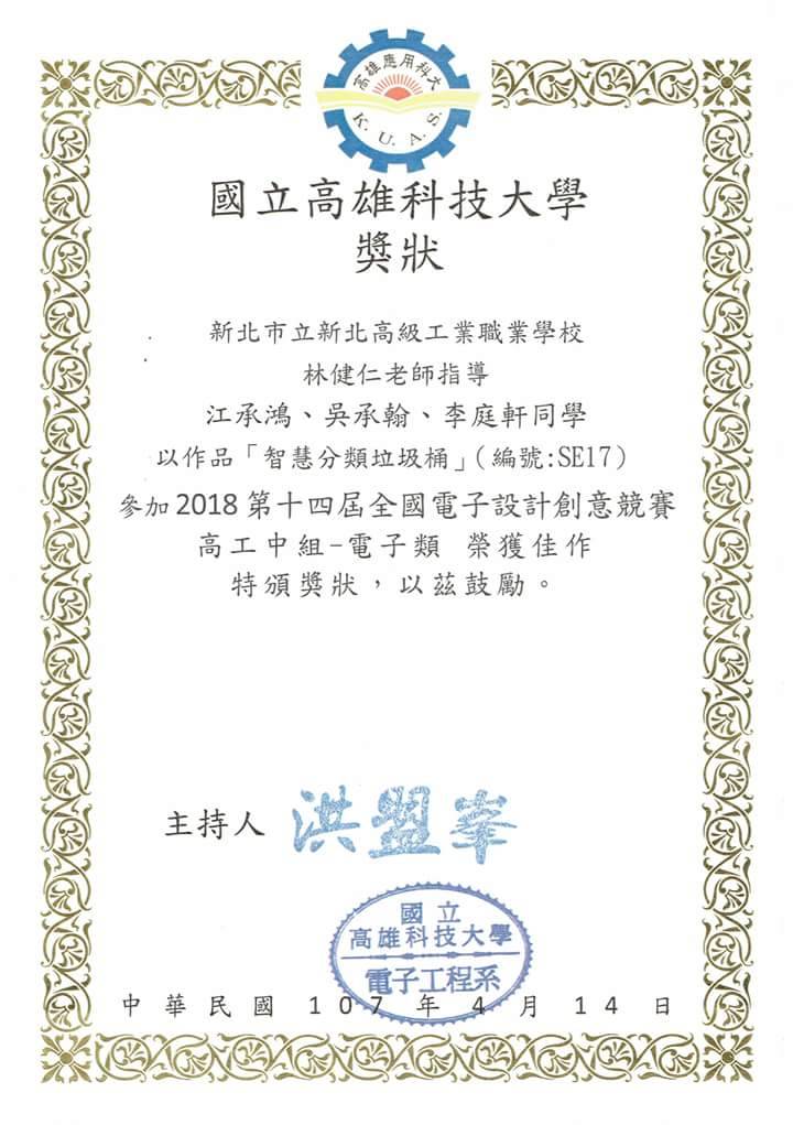 恭賀 電機科參加2018年第十四屆全國電子設計創意競賽榮獲佳績