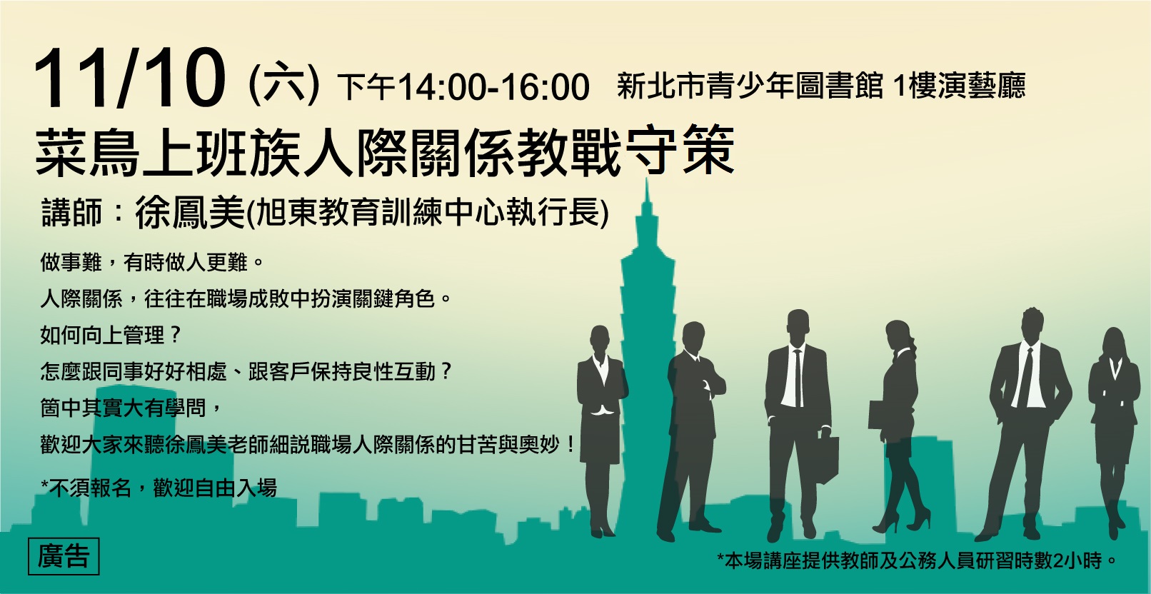 轉知:新北市青少年圖書館「菜鳥上班族人際關係教戰守策」主題講座文宣