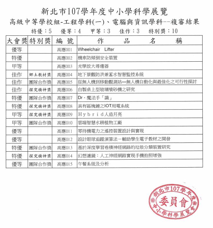 賀!電機科參加107學年度新北市科展榮獲佳績