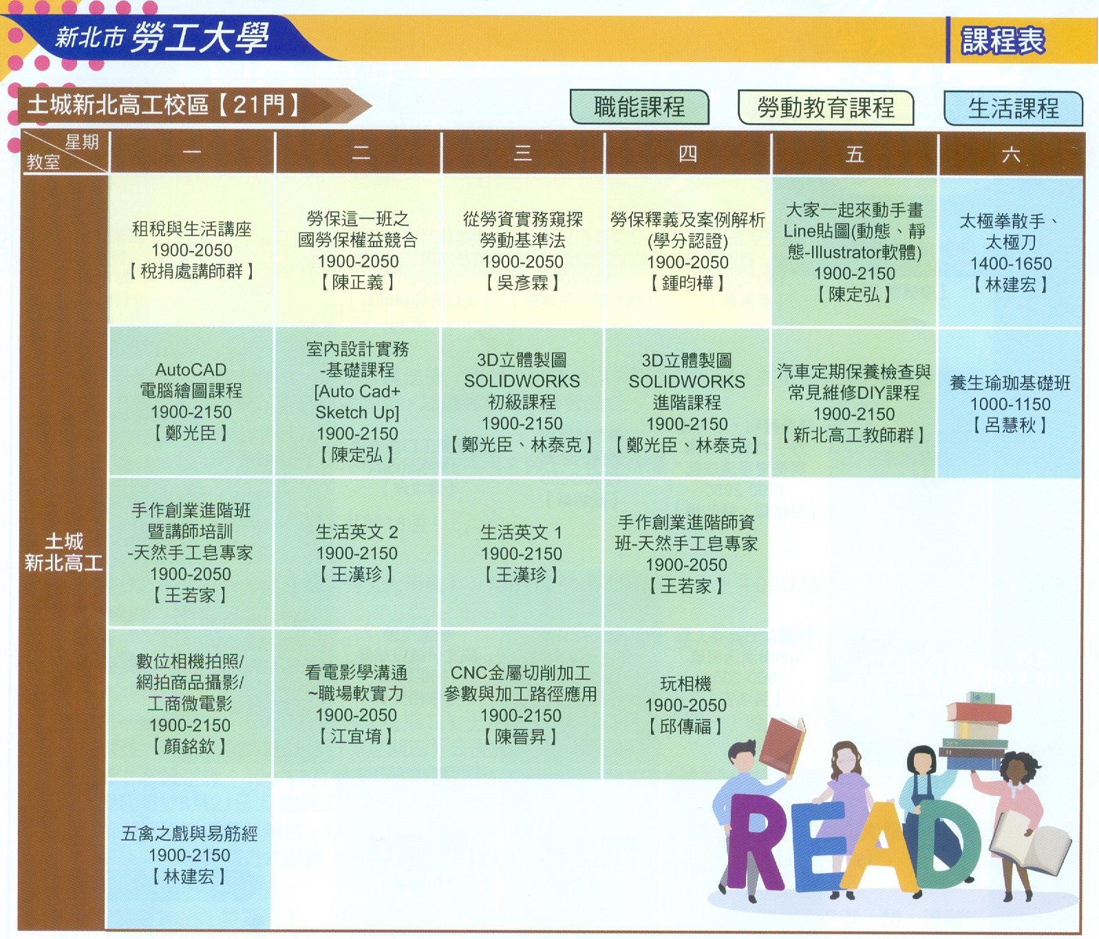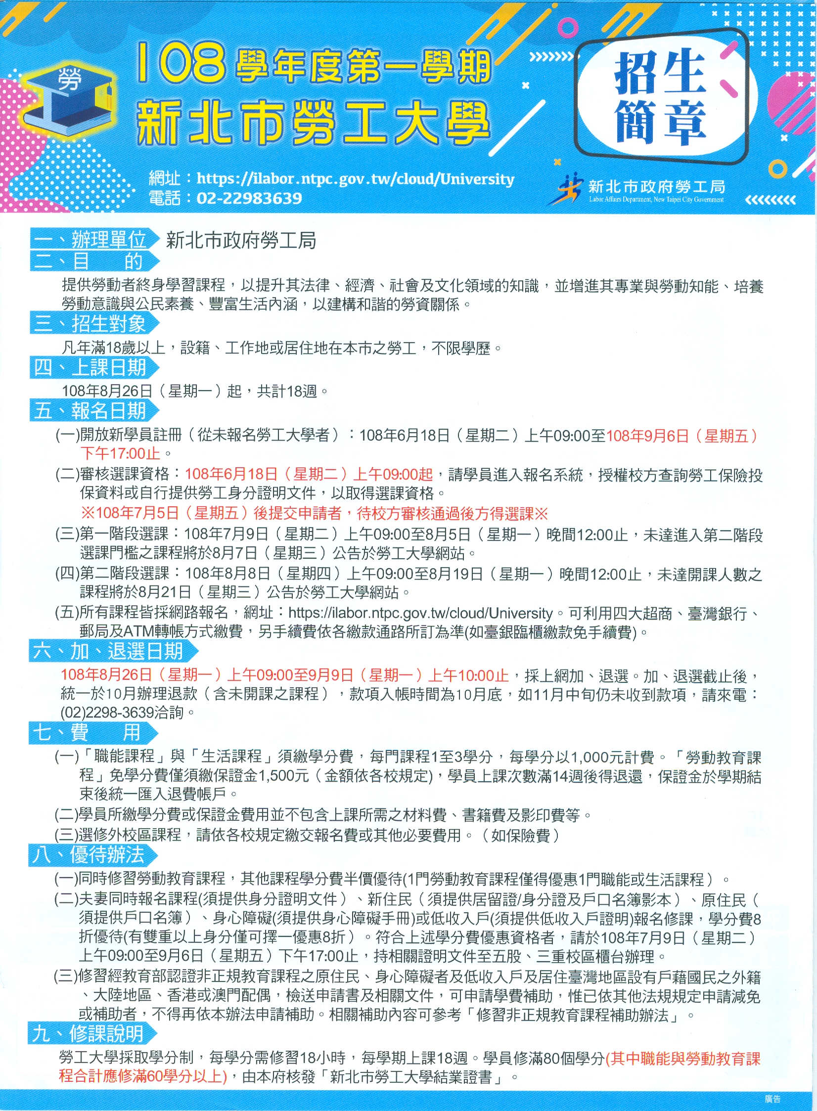 3.各位注意 已於7/9開始報名日期 若未註冊及資格尚未審核通過要快喔! (熱門班級人數有限,本校區離海山捷運站 ,約6分鐘路程交通便利) 歡迎 土城區、三峽區、板橋區、樹林區、新莊區、 中和區、新店區...等鄰近民眾及年輕朋友上網報名。