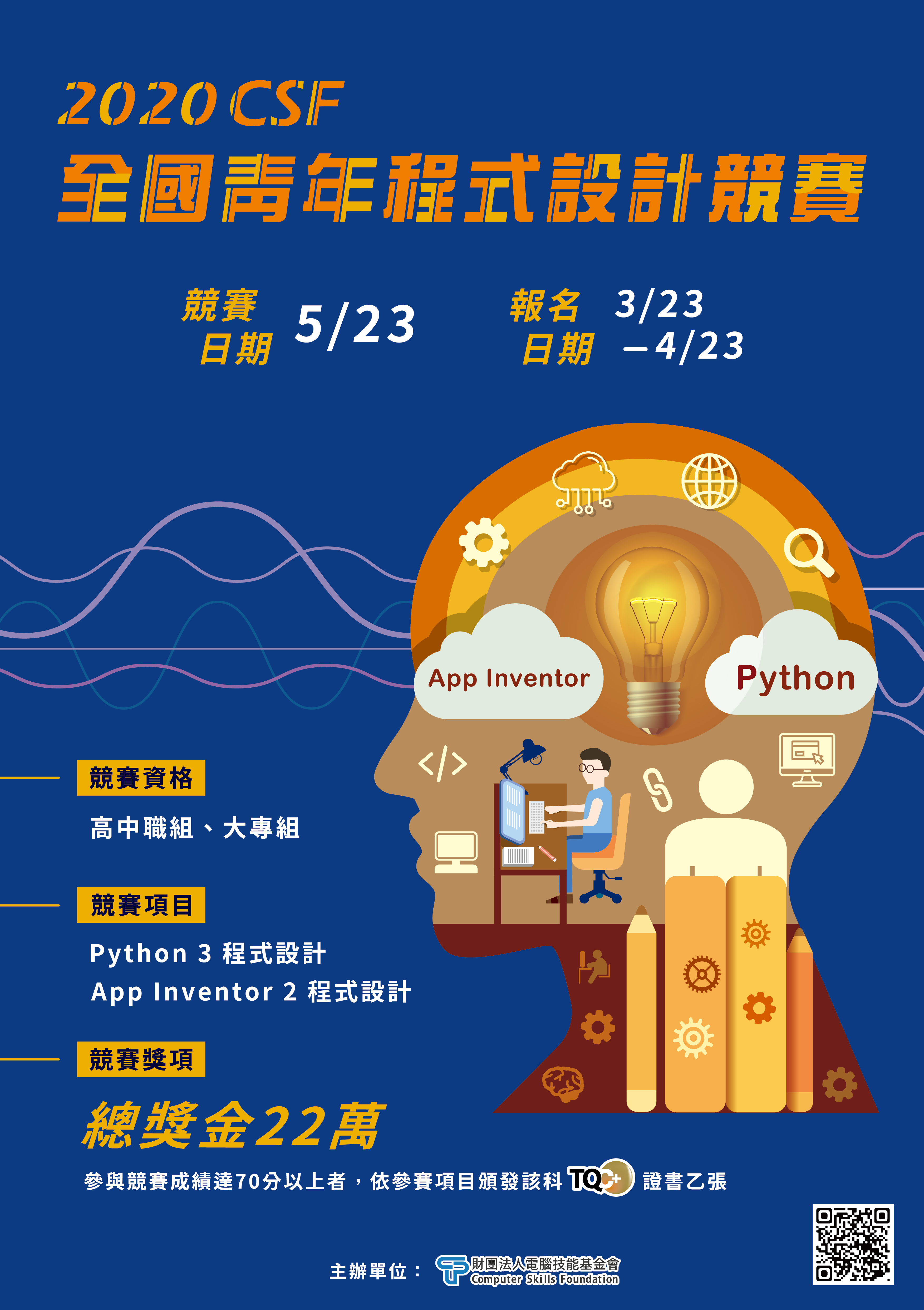 轉知:財團法人中華民國電腦技能基金會公告「2020 CSF全國青年程式設計競賽」相關訊息。