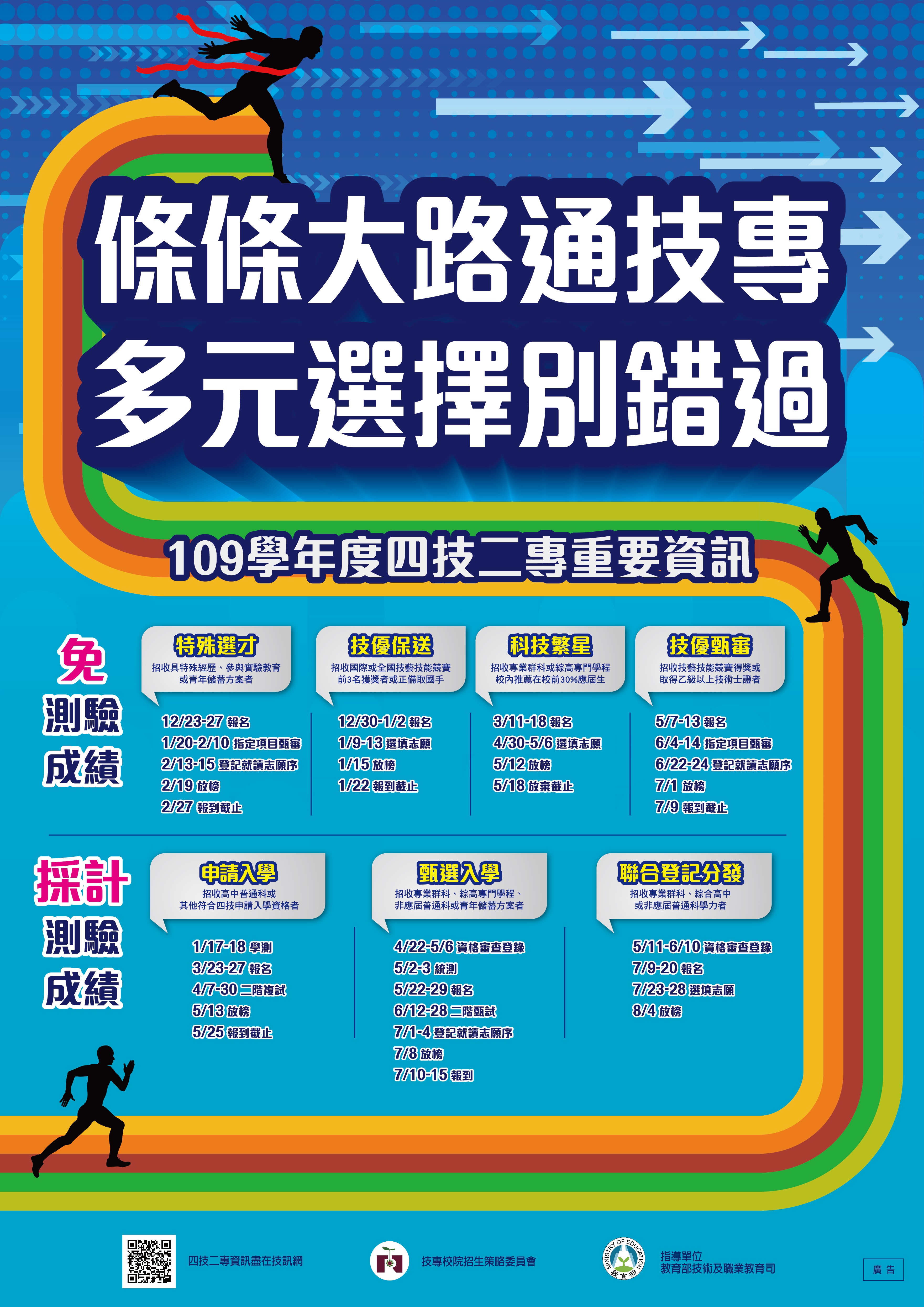 二、該會另印製109學年度四技二專招生重要日程海報供學生升學參閱,紙本海報已協請各縣市政府教育局(處)轉發。