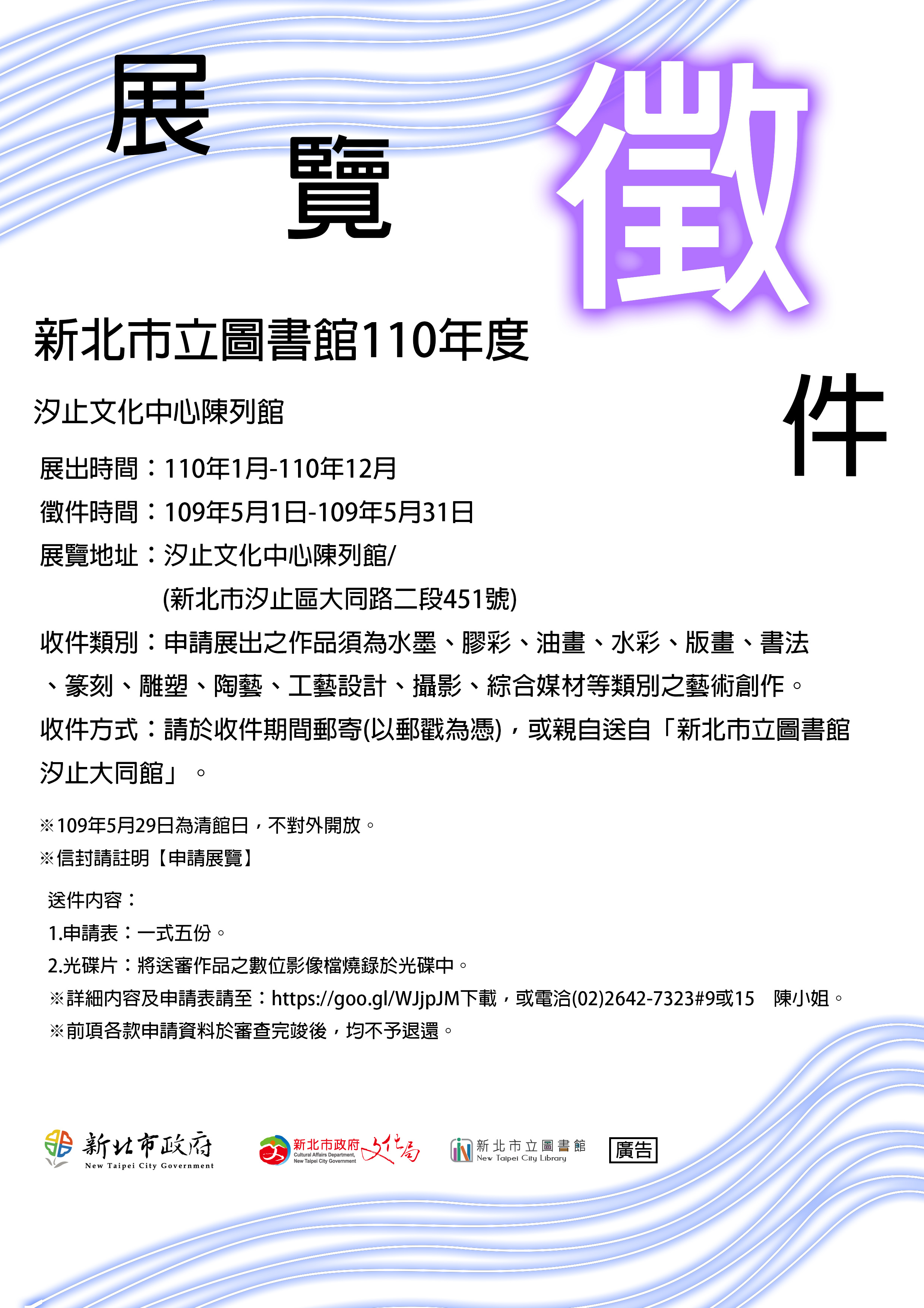 轉知:「汐止文化中心陳列館110年美術展覽」徵件訊息