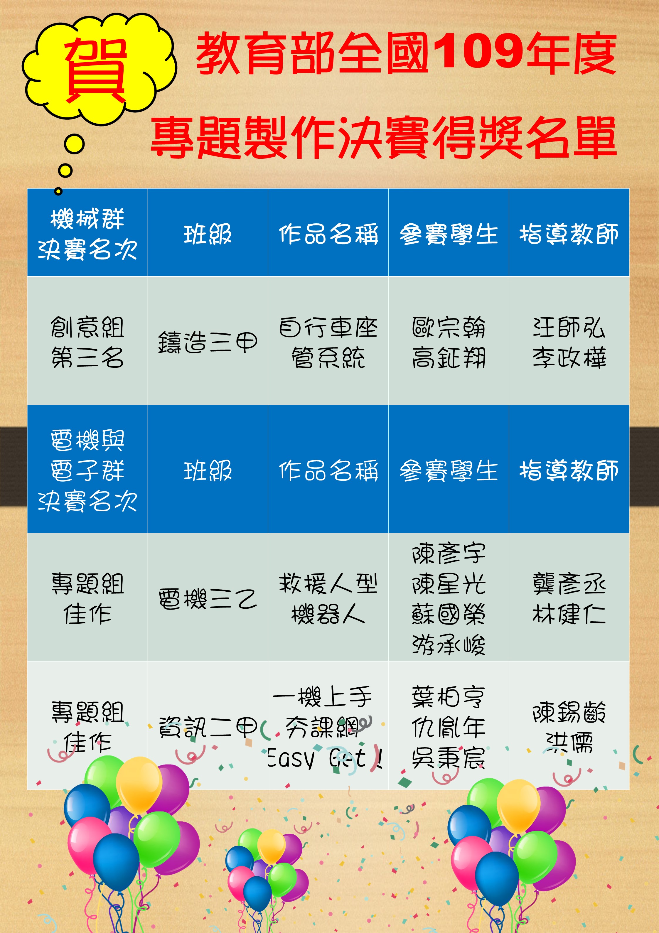 狂賀教育部全國109年度專題製作決賽榮獲佳績
