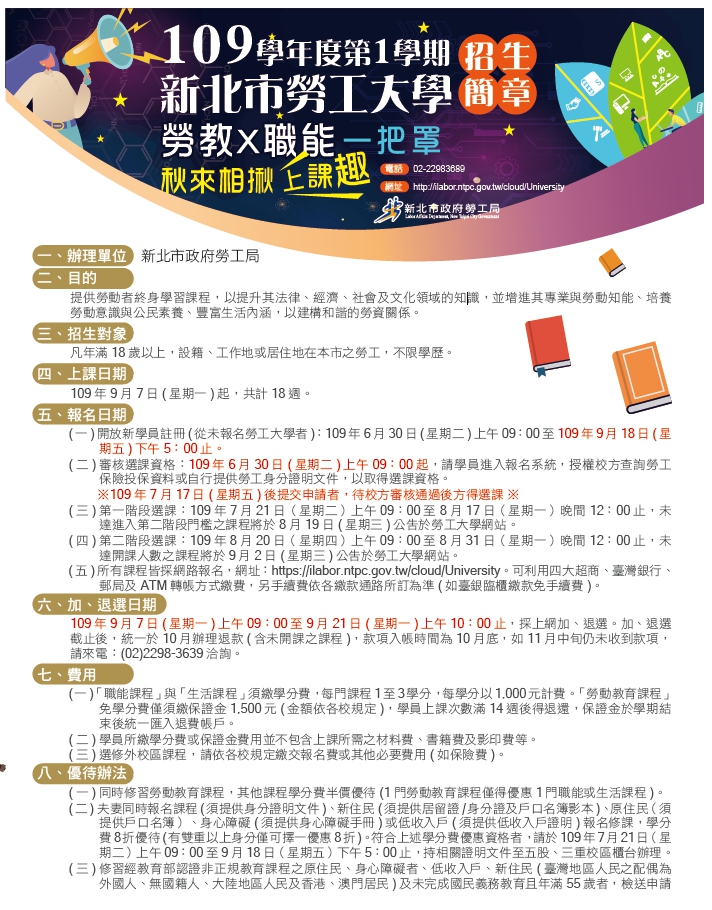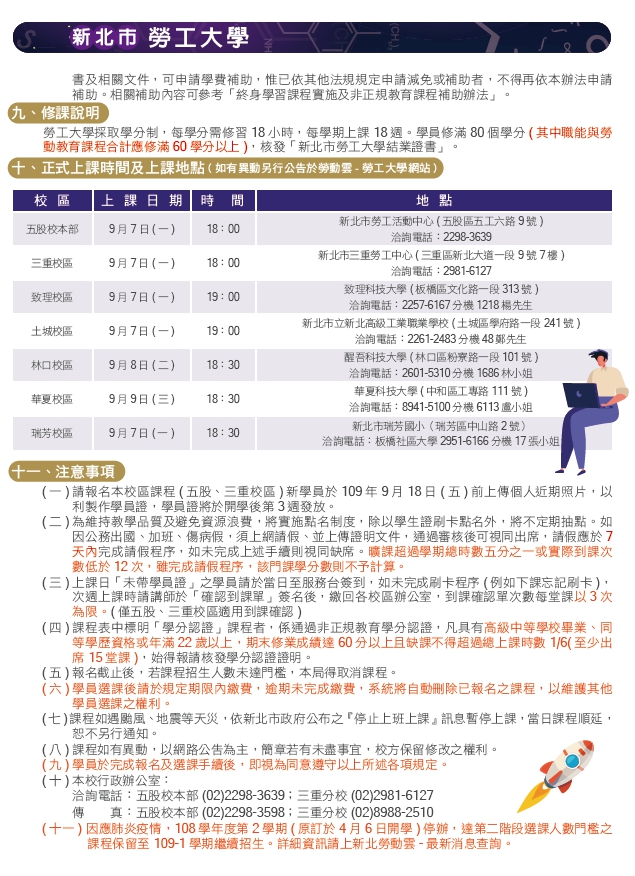 ※有關加退選、退費、系統報名相關問題,請洽新北市勞工大學