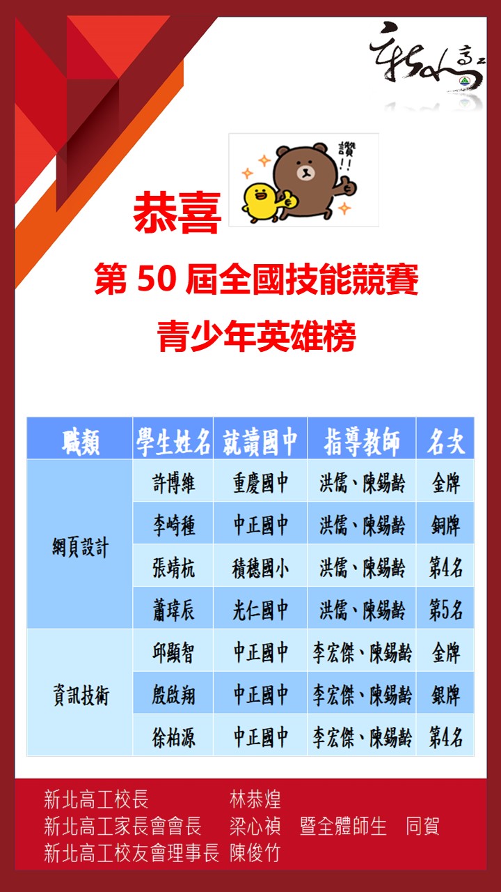 恭喜!第50屆全國技能競賽青少年英雄榜
