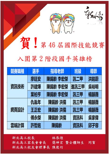 狂賀~第46屆國際技能競賽入圍第2階段國手英雄榜