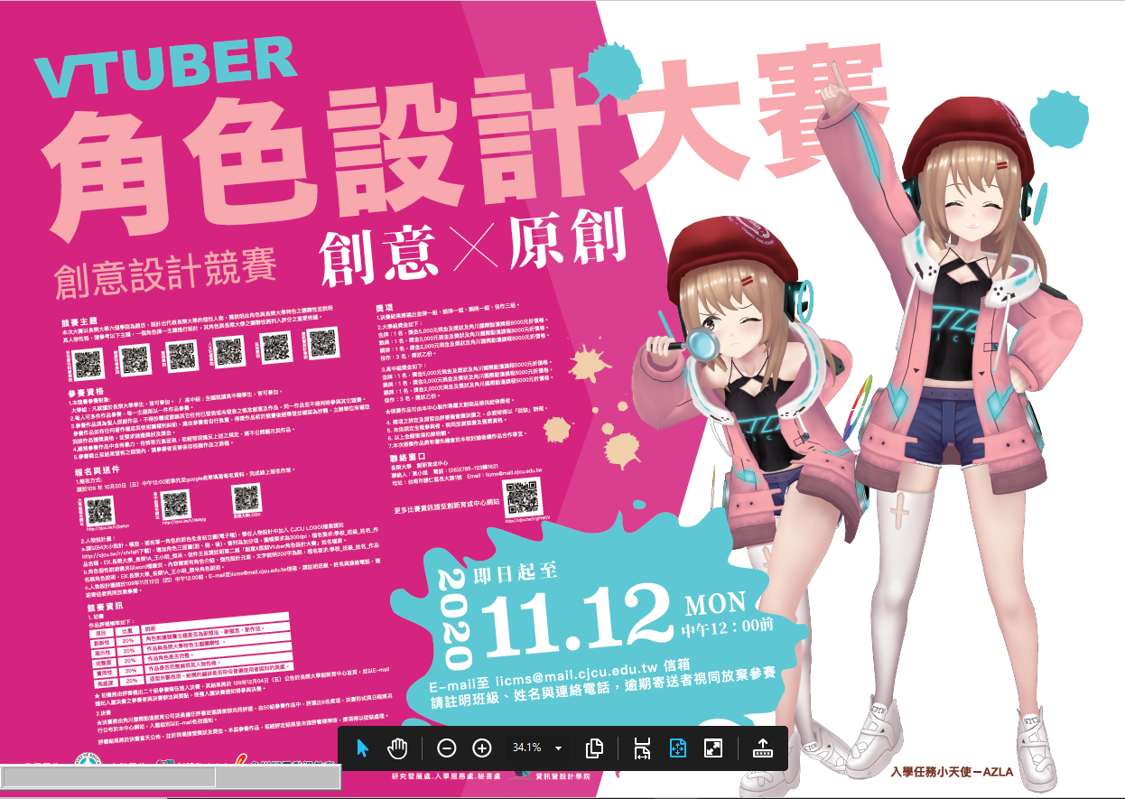 一、第二屆「創意X原創Vtuber角色設計大賽」賽事詳細資訊如網頁所示,http://cjcu.tw/r/gFHiCV。