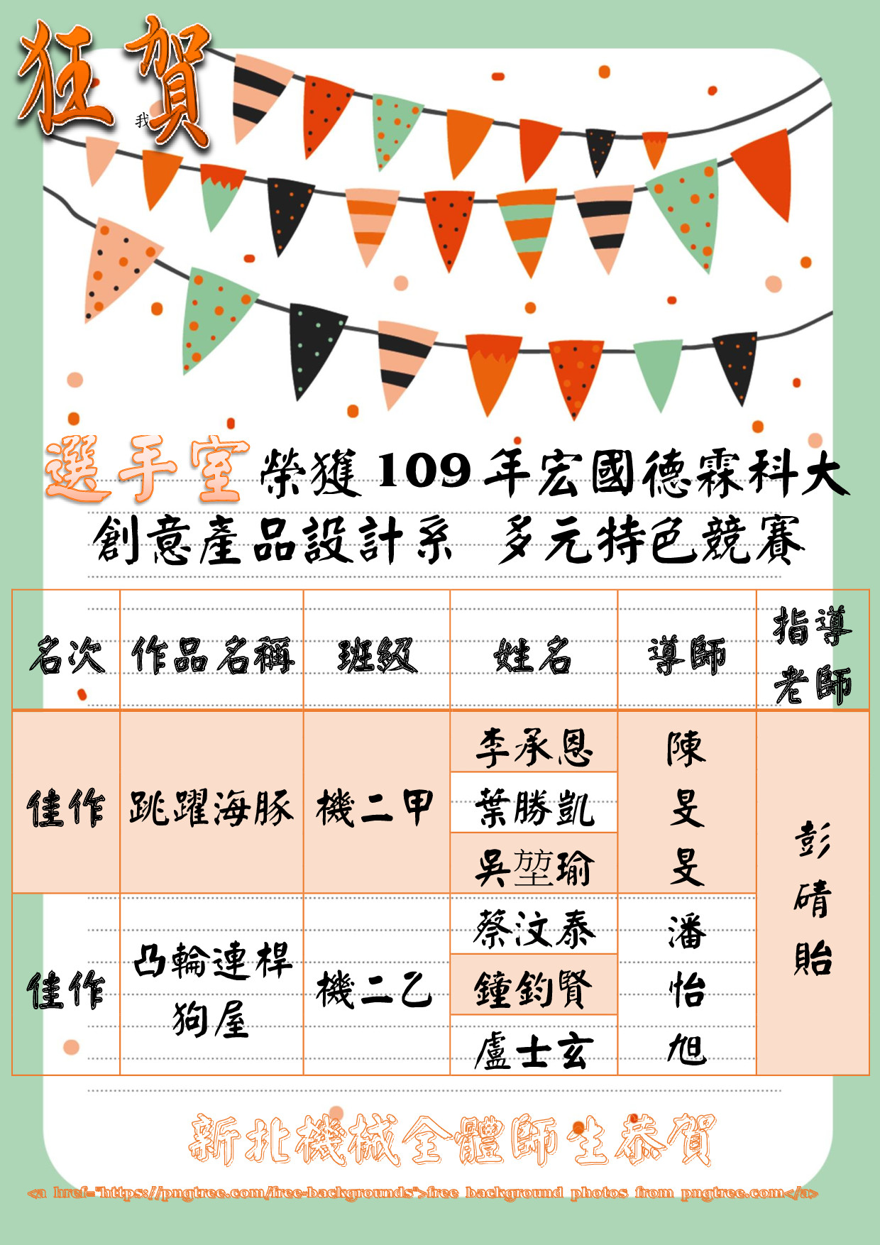 <狂賀> 選手室參加多元特色競賽-創意產品設計-機械類 榮獲佳作2組