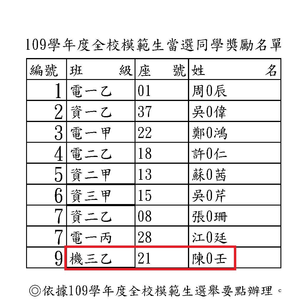 <狂賀>機三乙陳泓壬同學當選全校模範生