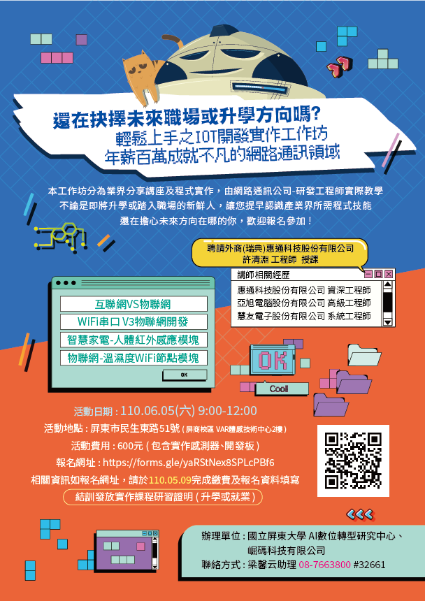 轉知:國立屏東大學 AI數位轉型研究中心辦理「輕鬆上手之IOT開發實作工作坊」。