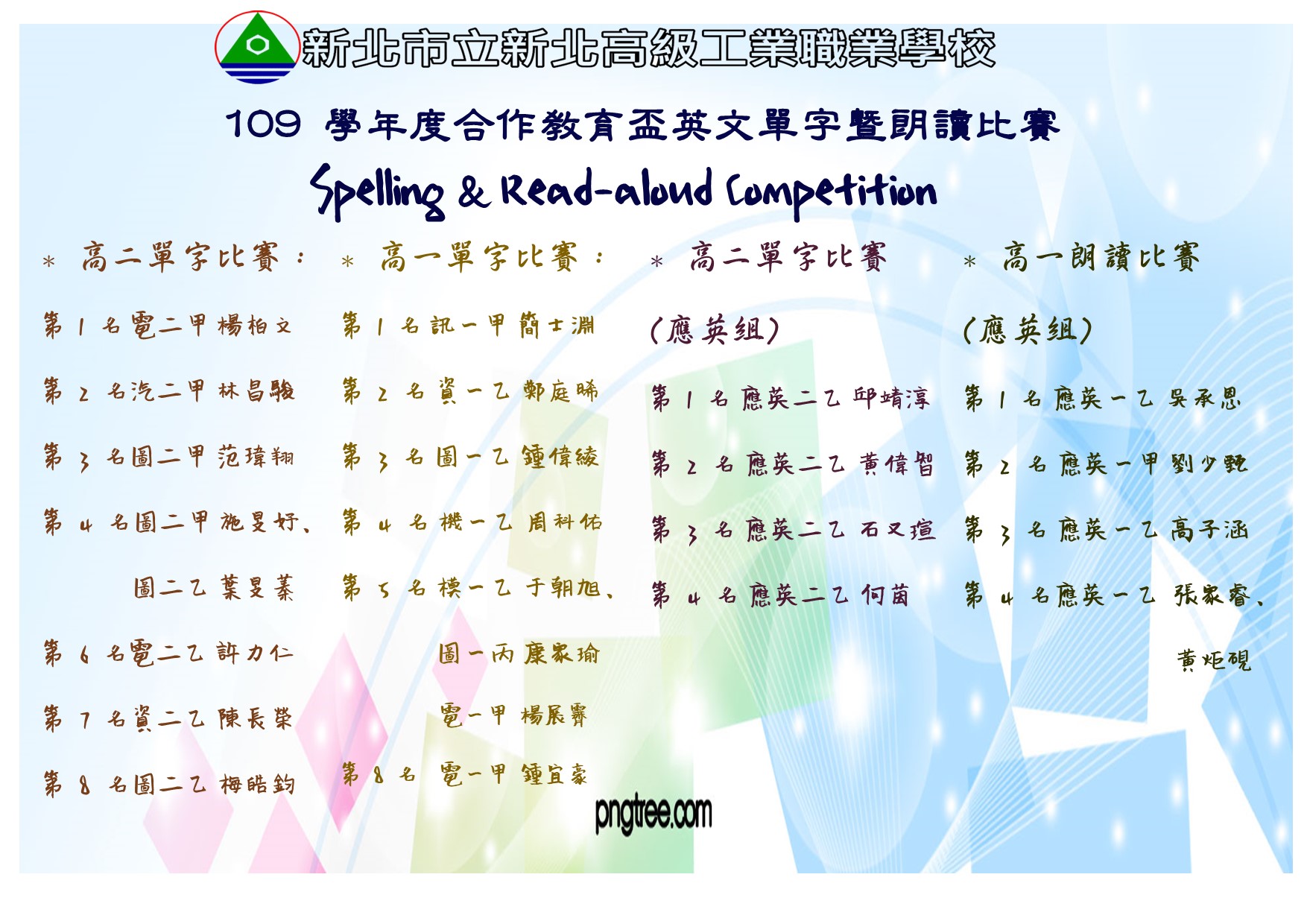 【公告】110學年度本校合作教育盃國語文及母語競賽得獎名單及得獎作品