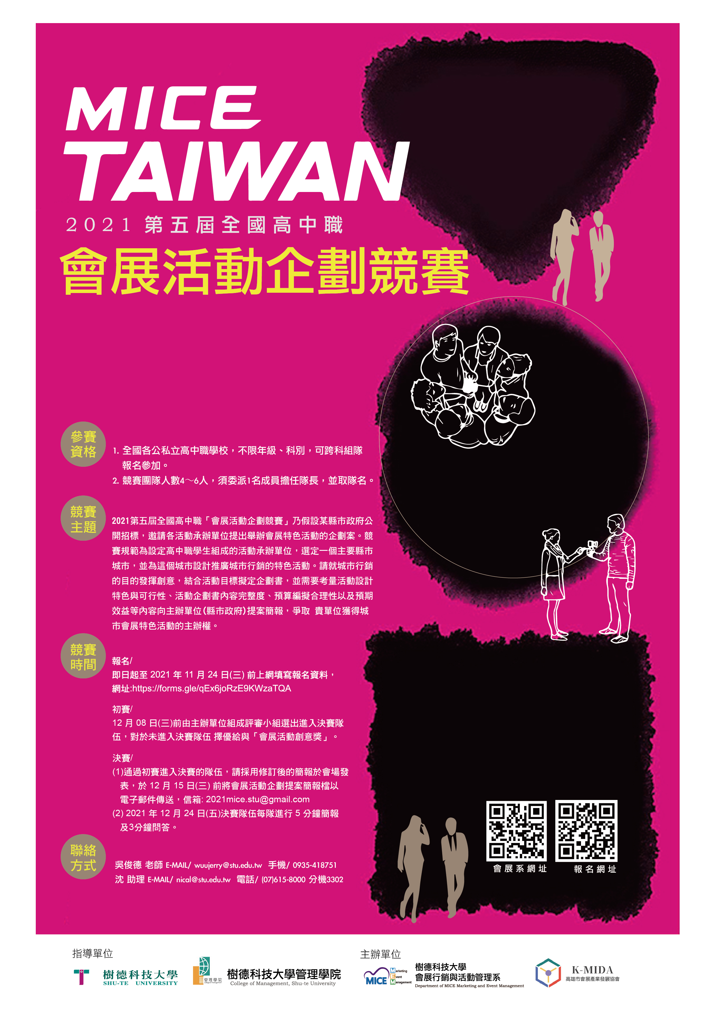 一、2021第五屆全國高中職會展活動企劃競賽報名截止日期:2021年11月24日(三)止 。