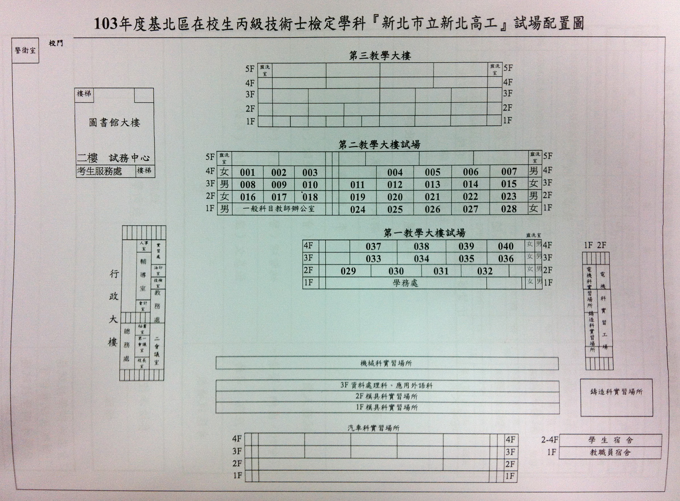 103年度基北區在校生丙級技術士檢定學科「新北市立新北高工」試場配置圖
