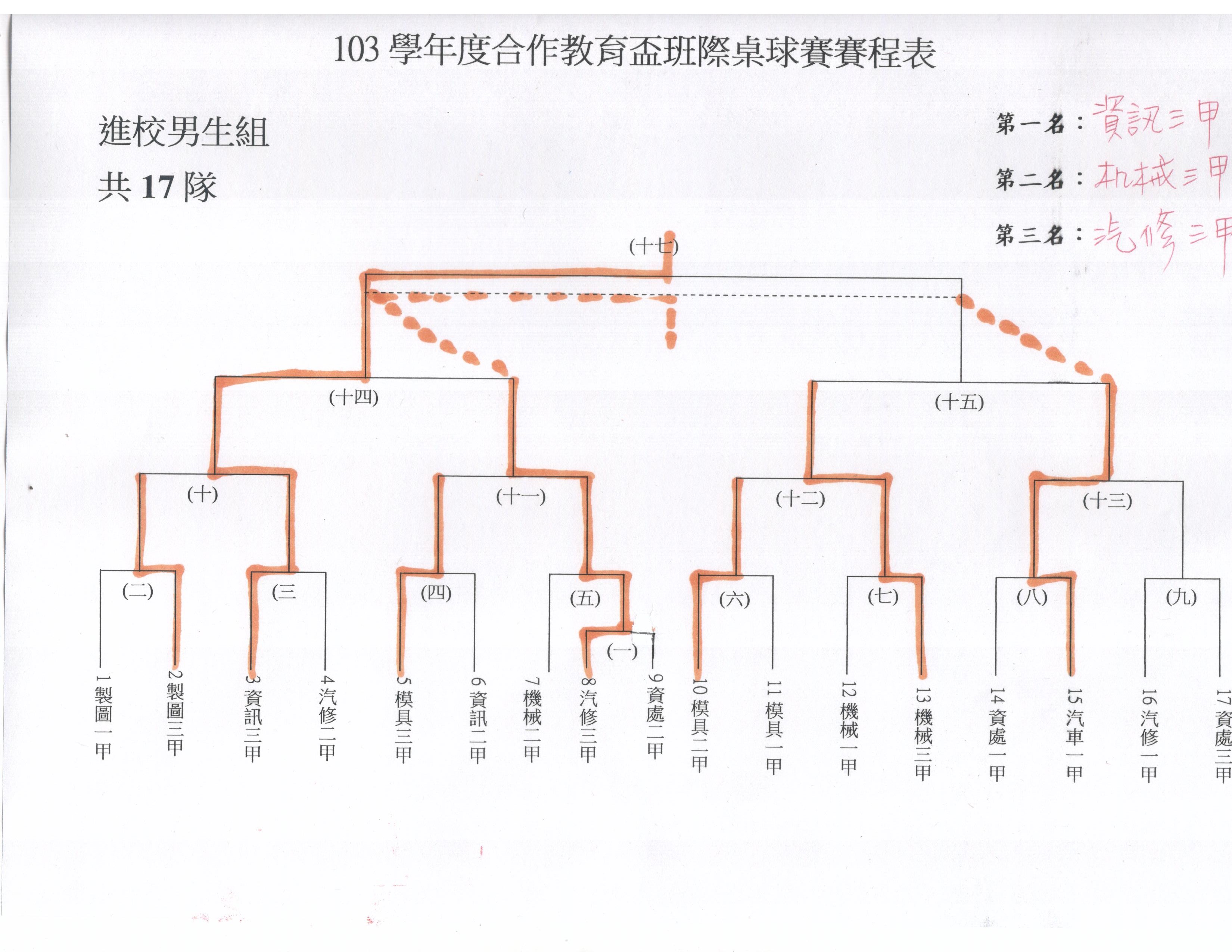 103學年度合作教育盃班際桌球/排球比賽競賽規程公告